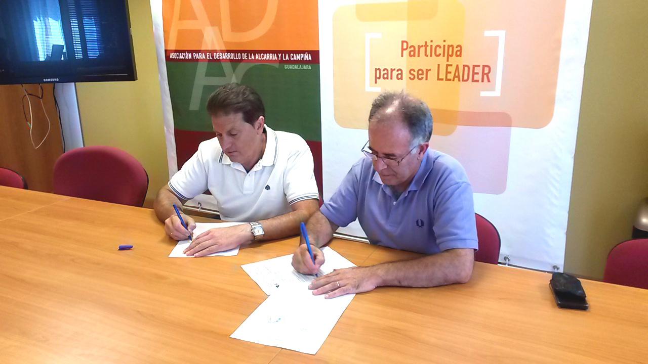Momento de la firma entre el primer edil yunquerano, José Luis González y el presidente de ADAC, Vicente Hita