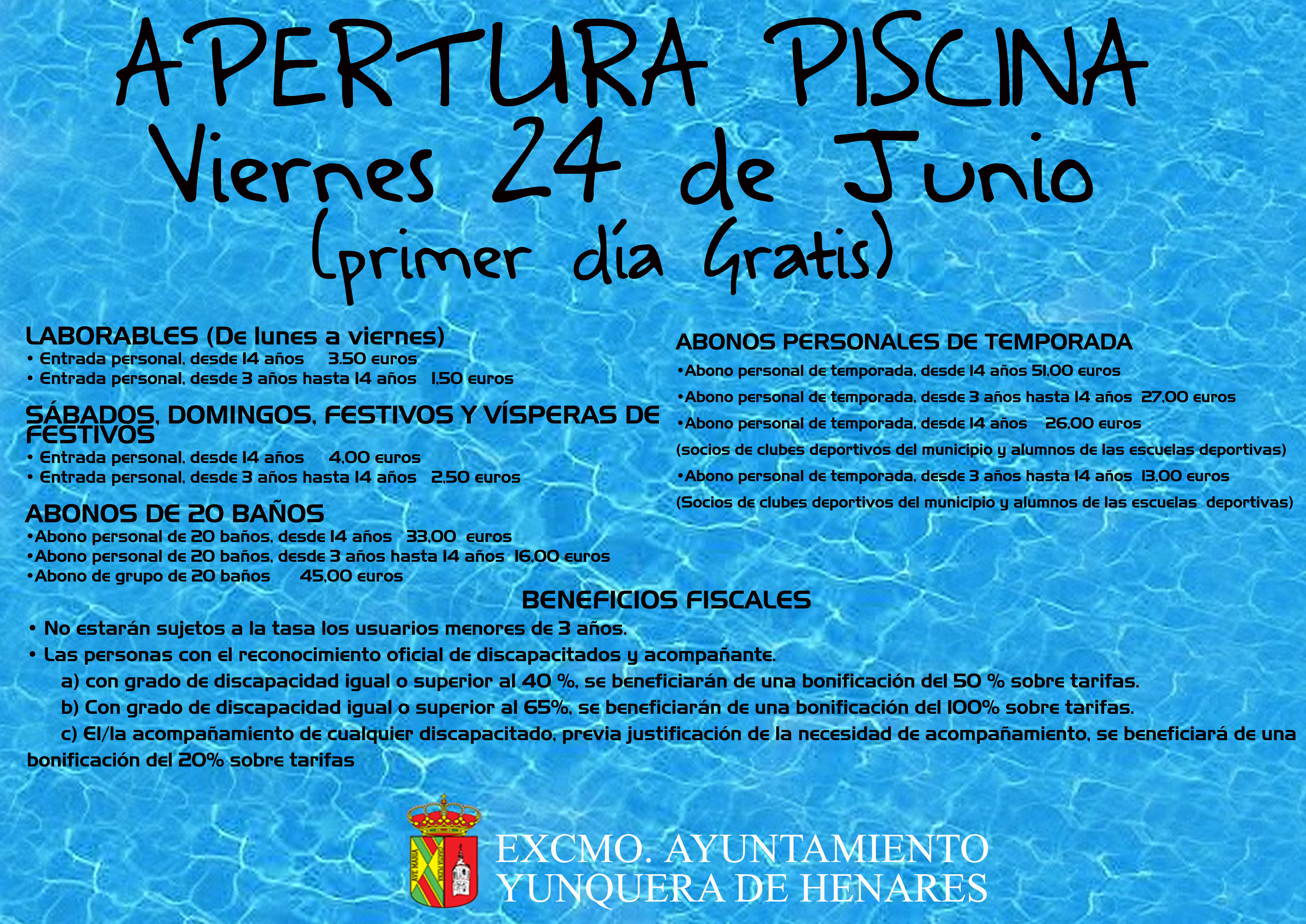 EL PRÓXIMO 24 DE JUNIO SE ABRIRAN LAS PUERTAS DE LA PISCINA MUNICIPAL CON ENTRADA GRATUITA.