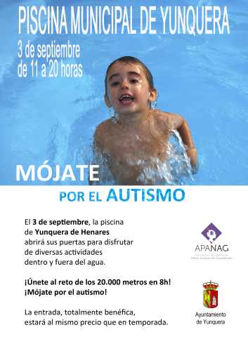 Mañana, la Asociación de Padres de Niños Autistas de Guadalajara, organiza la jornada ‘Mójate por el Autismo’, en la piscina municipal de Yunquera de Henares.…