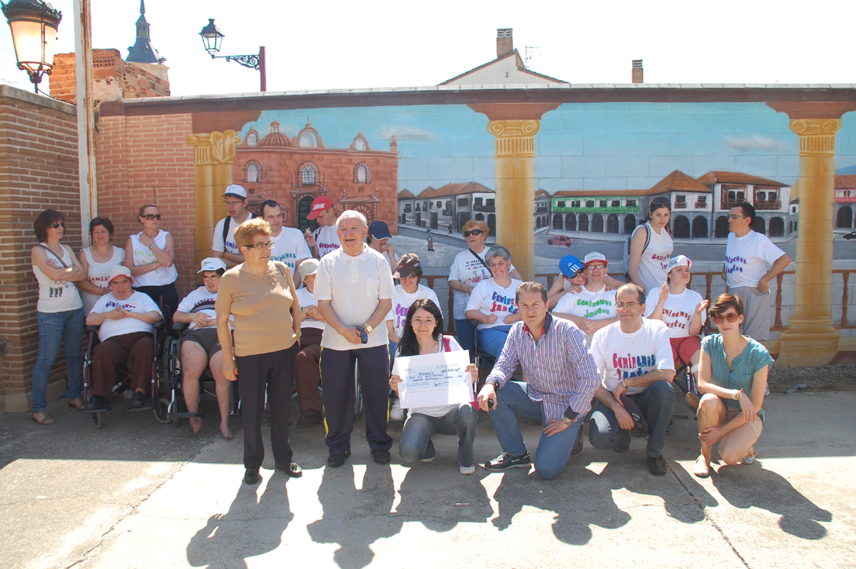 AMBOS COLECTIVOS SE UNIERON EN UN PASEO REIVINDICATIVO ENTRE EL COLEGIO Y LA PLAZA MAYOR DE YUNQUERA DE HENARES DONDE JOSÉ LUIS GONZÁLEZ, COMO ALCALDE, HIZO ENTREGA A LA ASOCIACION APAFADIS DE UN CHEQUE POR IMPORTE DE 2.500 EUROS, REMANENTE COMPROMETIDO EN LA FERIA DEL CABALLO ECUALTUR 2011 PARA CLASES DE HIPOTERAPIA DESTINADAS A LOS PACIENTES DEL CENTRO LA CHOPERA
