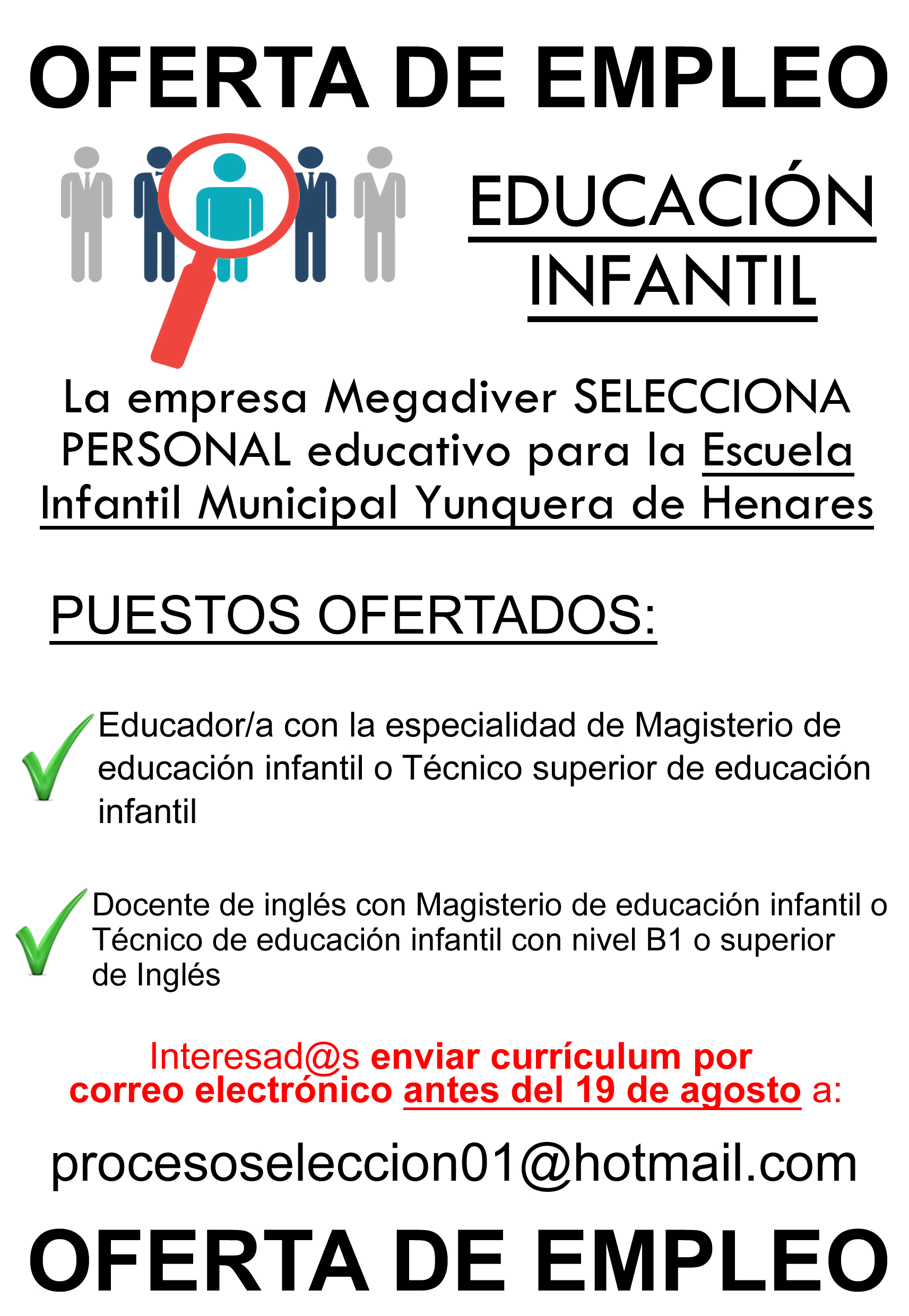 LOS INTERESADOS PODRÁN PRESENTAR LA SOLICITUD PARA CUBRIR DICHO PUESTO, DESDE EL DIA 11 HASTA EL 18 DE SEPTIEMBRE, EL REGISTRO DEL AYUNTAMIENTO, EN HORARIO DE 9 A 14 HORAS, DE LUNES A VIERNES