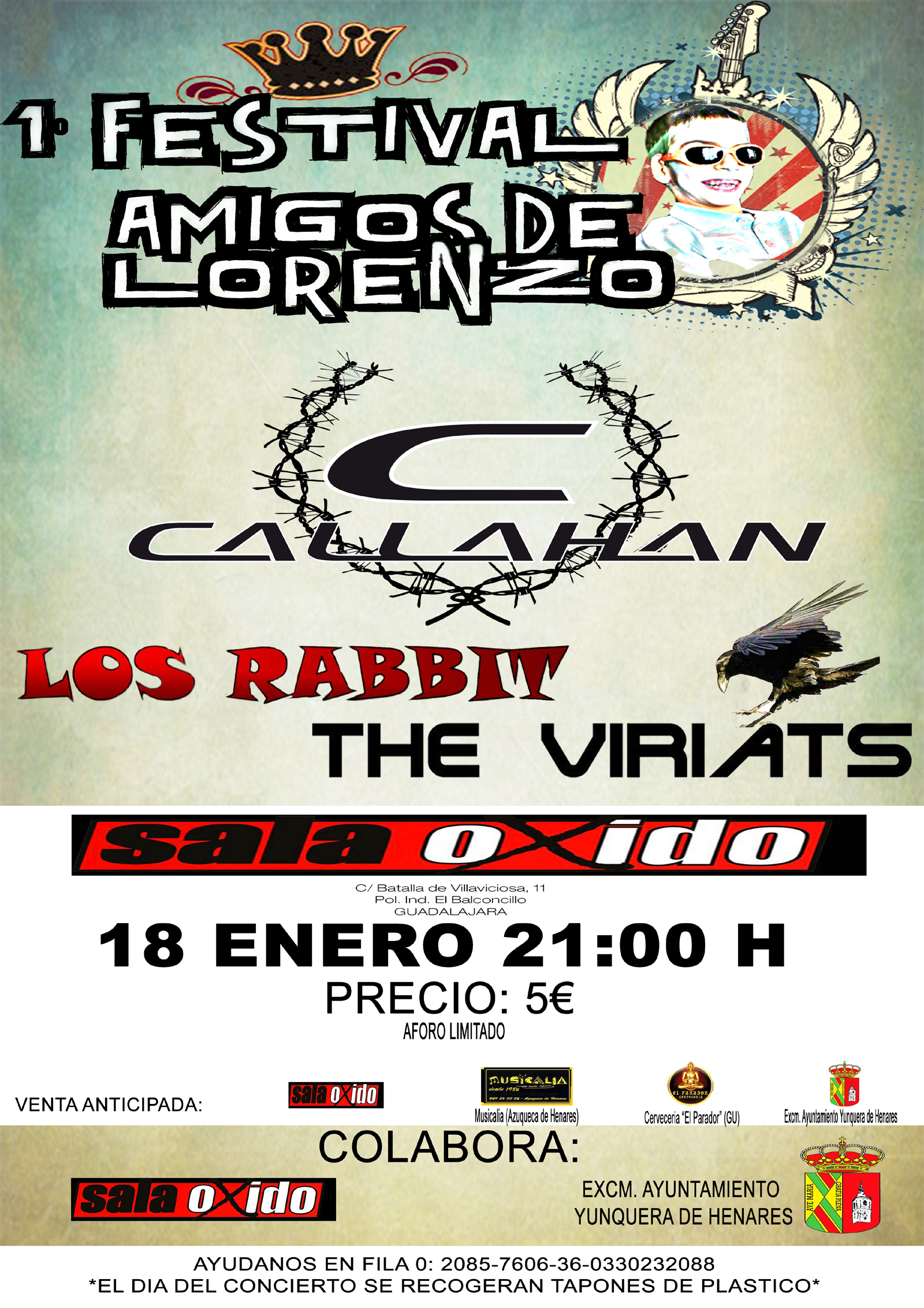 Las iniciativas en favor del joven yunquerano Lorenzo Campos Muñoz, con una encefalopatía hipóxicoisquémica moderada de nacimiento, no cesan y si todo este tiempo la recogida de tapones gestionados a través del Ayuntamiento de Yunquera de Henares y la Fundación de Seur han sido protagonistas de los actos solidarios que estan permitiendo la compra de los equipos ortopedicos necesarios para ayudar a Lorenzito a ellas se les une la idea surgida de un grupo de musicos alcarreños para organizar un festival benéfico para recaudar fondos.…
