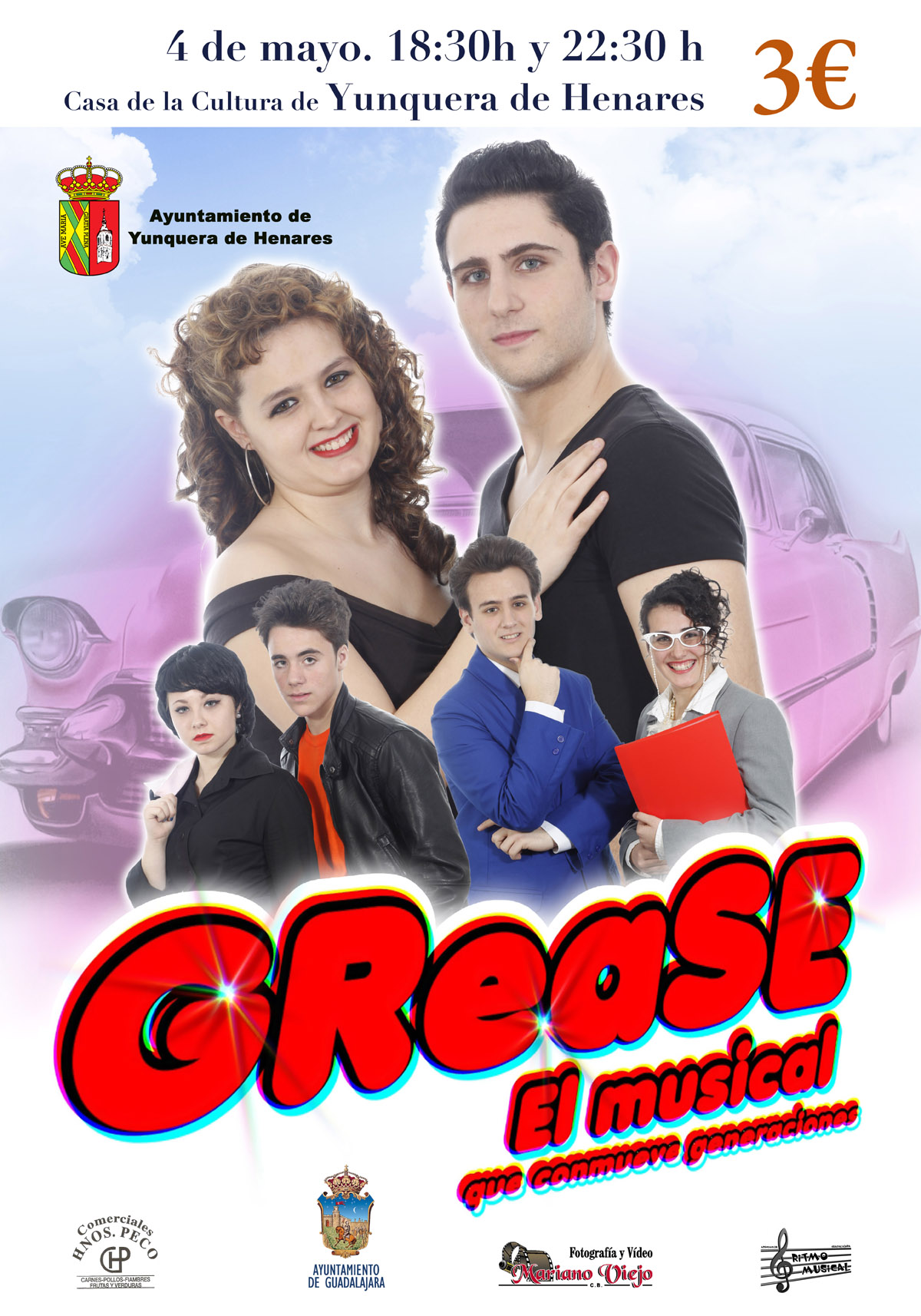 Mañana, sábado 4 de mayo, llega a Yunquera de Henares, de la mano de la Asociación Ritmo Musical, el espectáculo “GREASE El Musical que conmueve generaciones”, con dos representaciones que tendrán lugar en el teatro del Centro Cultural Miguel de Cervantes en horario de 18:30 el primer pase y a las 22:30, el segundo.…