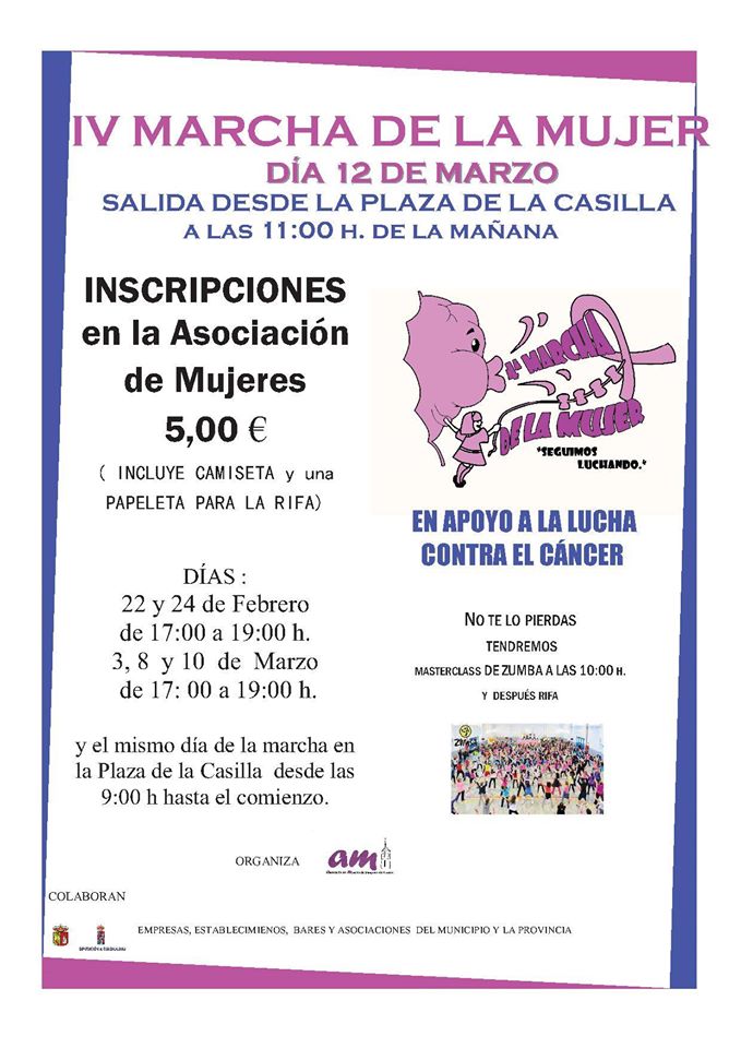 La Asociación de Mujeres de Yunquera de Henares con la colaboración de las Concejalías de la Mujer, Deportes, Asociaciones y Clubs de la localidad, Agrupación de Voluntarios de Protección Civil, Diputación Provincial de Guadalajara y varias empresas ubicadas en el municipio y alrededores, ha organizado para el próximo domingo, 12 de marzo, varios actos conmemorativos del “día de la mujer”, entre los que destaca, por cuarto año consecutivo, la celebración de la Marcha en apoyo a la lucha contra el cáncer.…