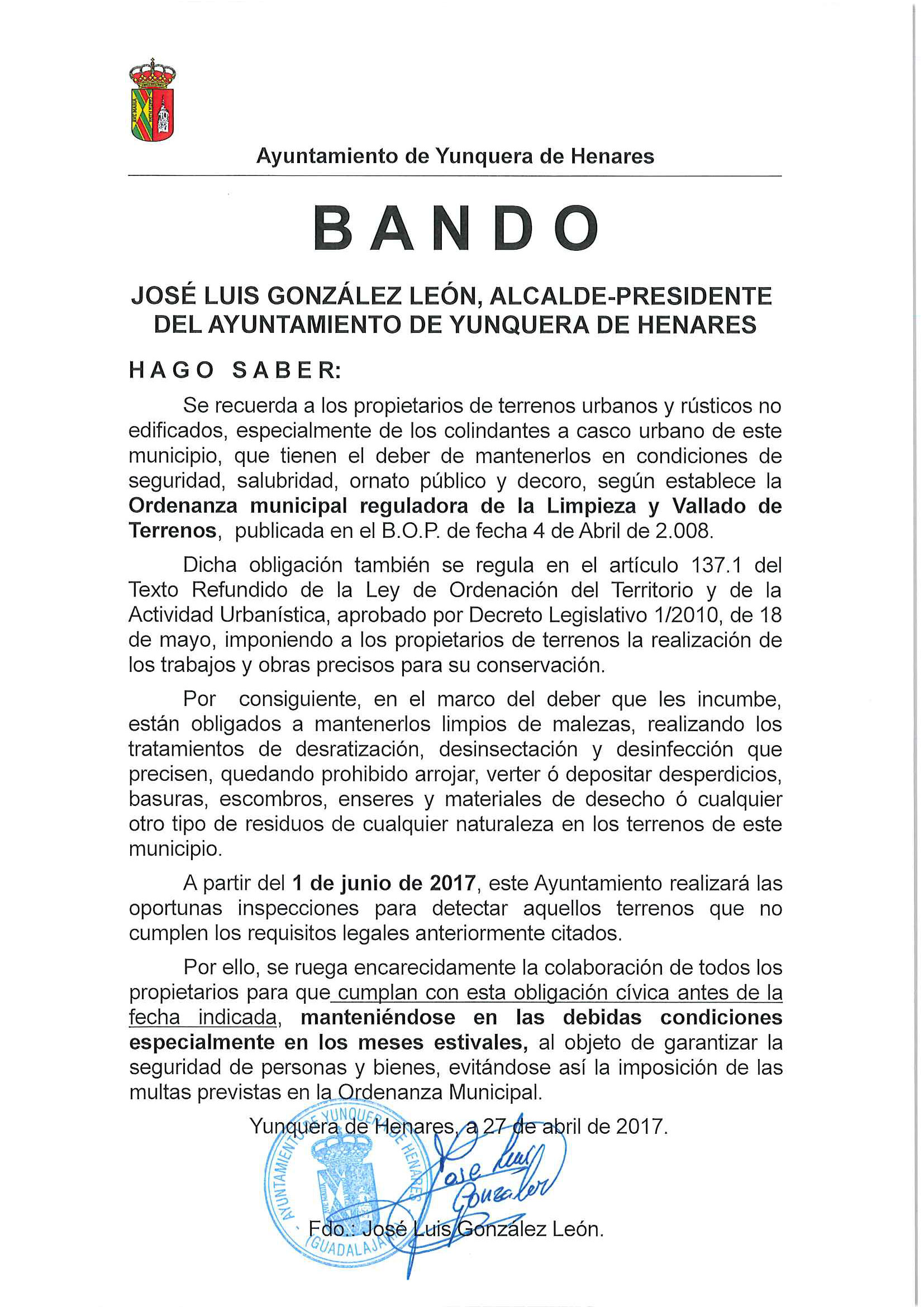 Desde mañana y hasta el viernes, 19 de mayo de 2017, está a disposición de todos los interesados el Pliego de Cláusulas Económico-Administrativas para licitar en la prestación del Servicio consistente en la explotación del Bar ubicado en la Piscina Municipal de Yunquera de Henares.…