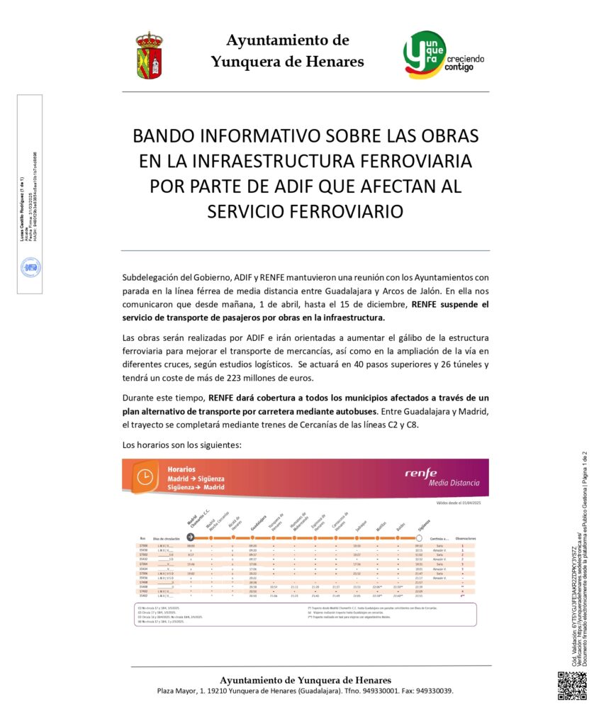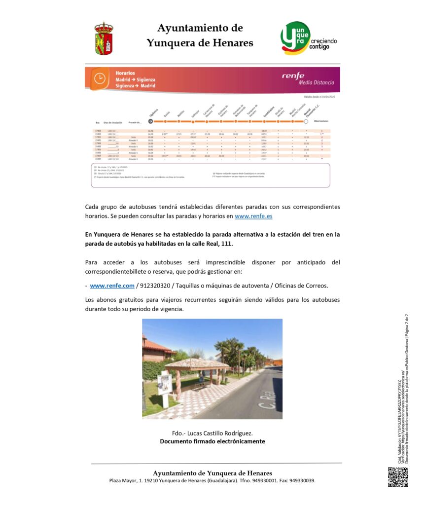 En Yunquera de Henares se ha establecido la parada alternativa a la estaciรณn del tren en la