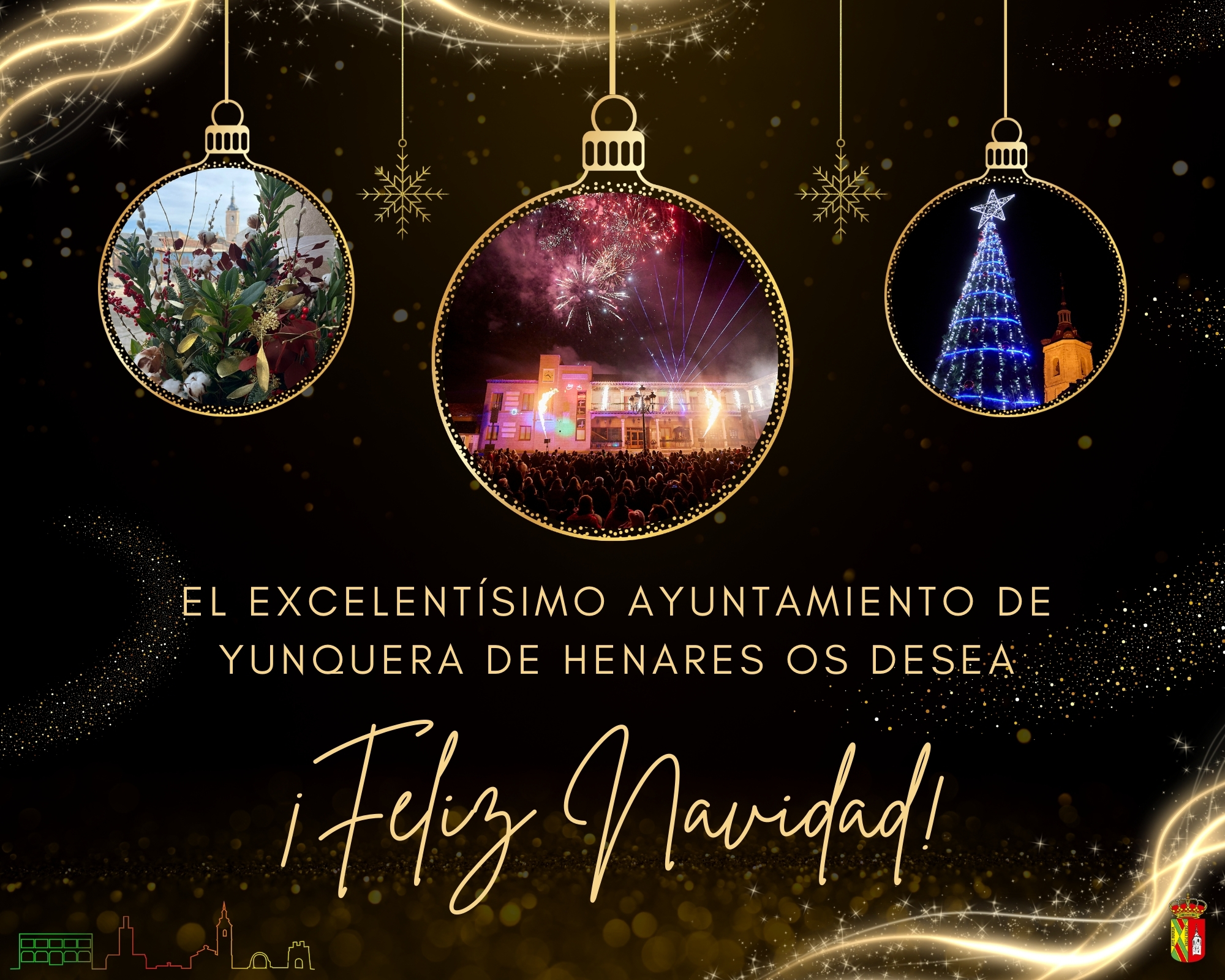 En nombre de la Corporaci贸n Municipal de Yunquera de Henares os deseamos una Feliz Navidad, con la esperanza de que el 2025 nos traiga a todos concordia, prosperidad y mucha salud.