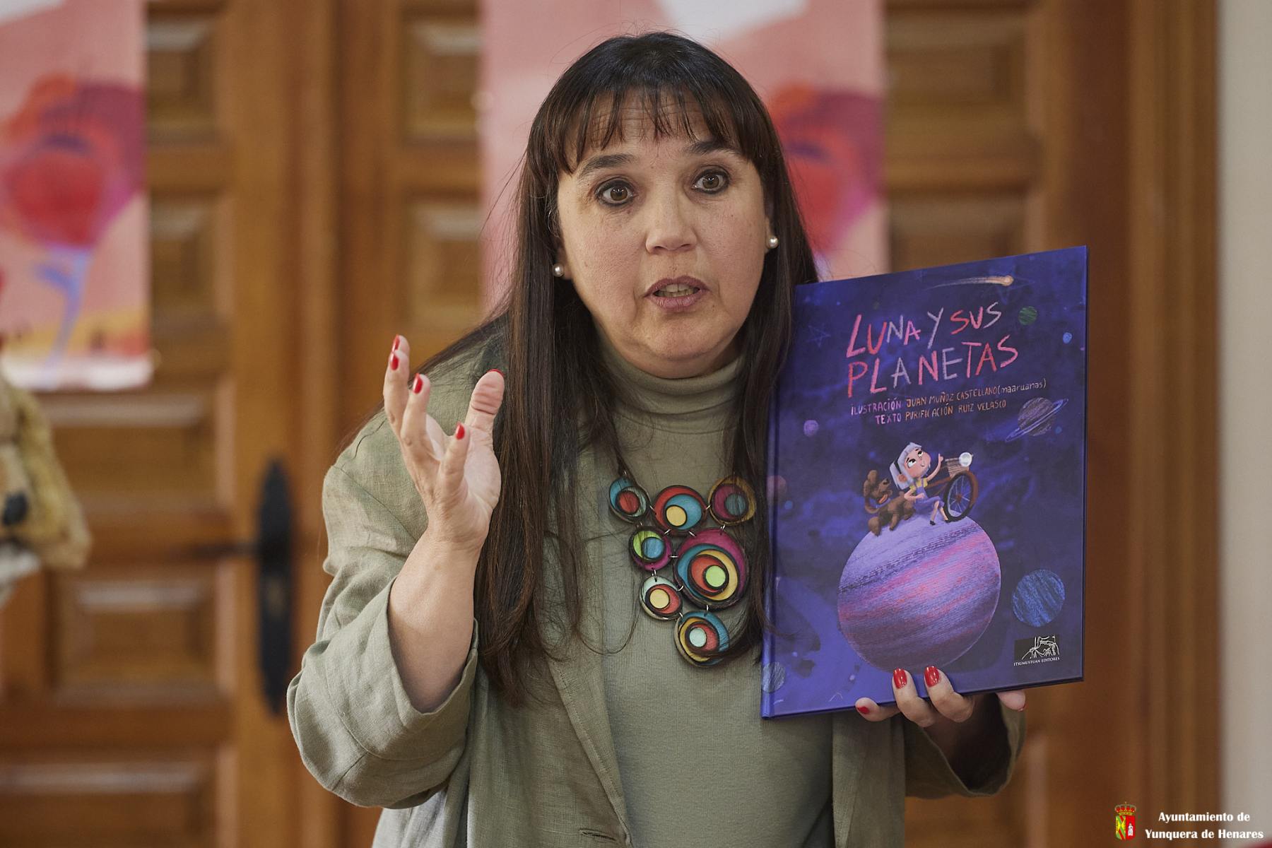 Una Biblioteca repleta de pรบblico infantil y adulto ha asistido a la presentaciรณn del libro infantil, โLuna y los planetasโ por su autora, Purificaciรณn Ruiz, a la que los niรฑos asistentes han ayudado a representar el cuento, disfrazados de planetas.