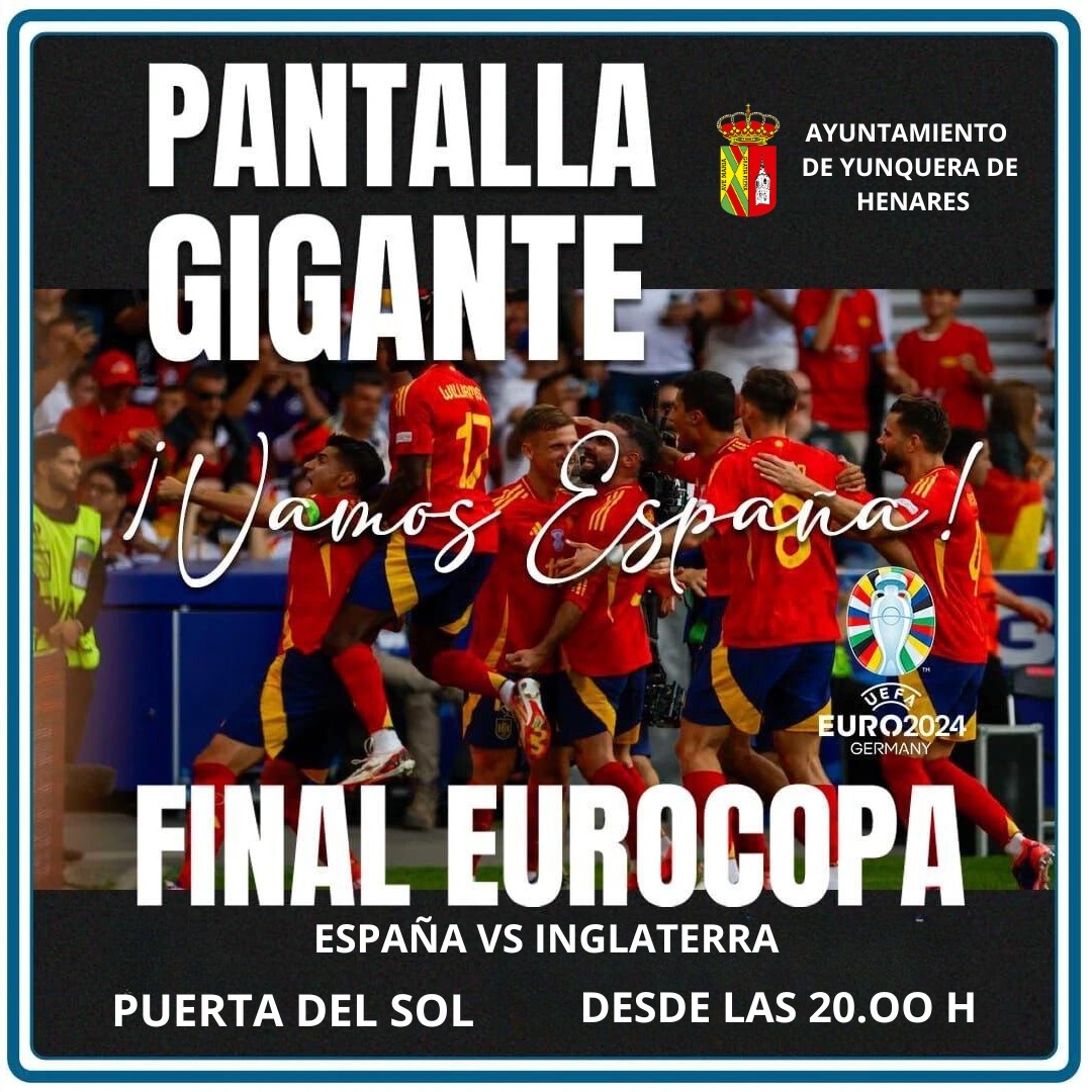 隆Pantalla gigante! Este pr贸ximo domingo 14 de julio te esperamos a partir de las 20:00h en la Puerta del Sol para vibrar con nuestra selecci贸n nacional de f煤tbol en busca de su cuarta Eurocopa.