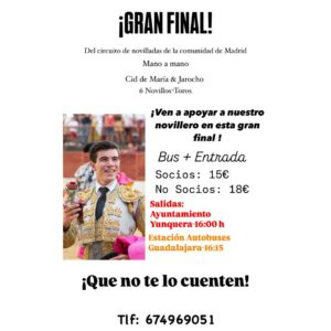 La Asociación Taurina Cid de María vuelve a preparar un viaje para apoyar al novillero local en la gran cita de este próximo sábado, la final del circuito de novilladas de Madrid.