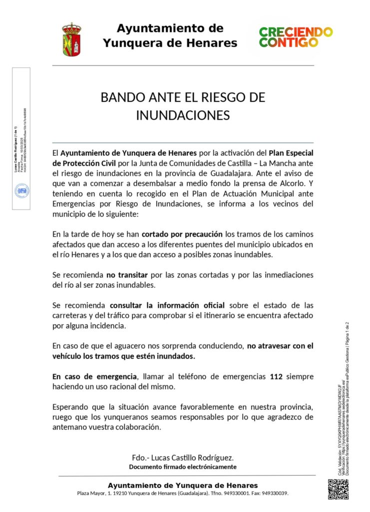 Ante la activaci贸n del Plan Especial de Protecci贸n Civil por parte de la JCCM y ante el aviso del desembalse de la presa de Alcorlo.
