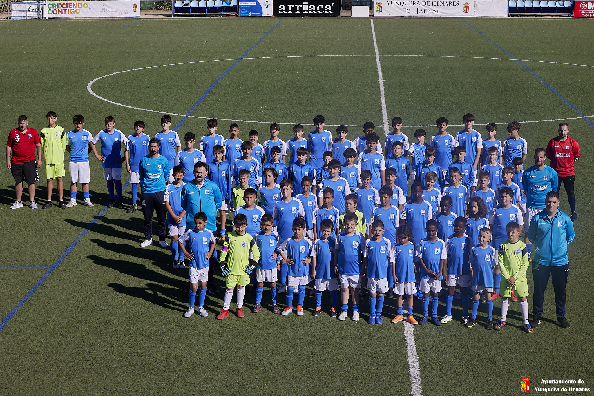 En la tarde de ayer el CD Yunquera present贸 los equipos de su cantera: un equipo de benjamines, dos de alevines y dos equipos de infantiles saltaron al c茅sped para posar durante el descanso del partido entre el Yunquera y el Cedillo del Condado, en el que los locales se impusieron por dos goles a uno.