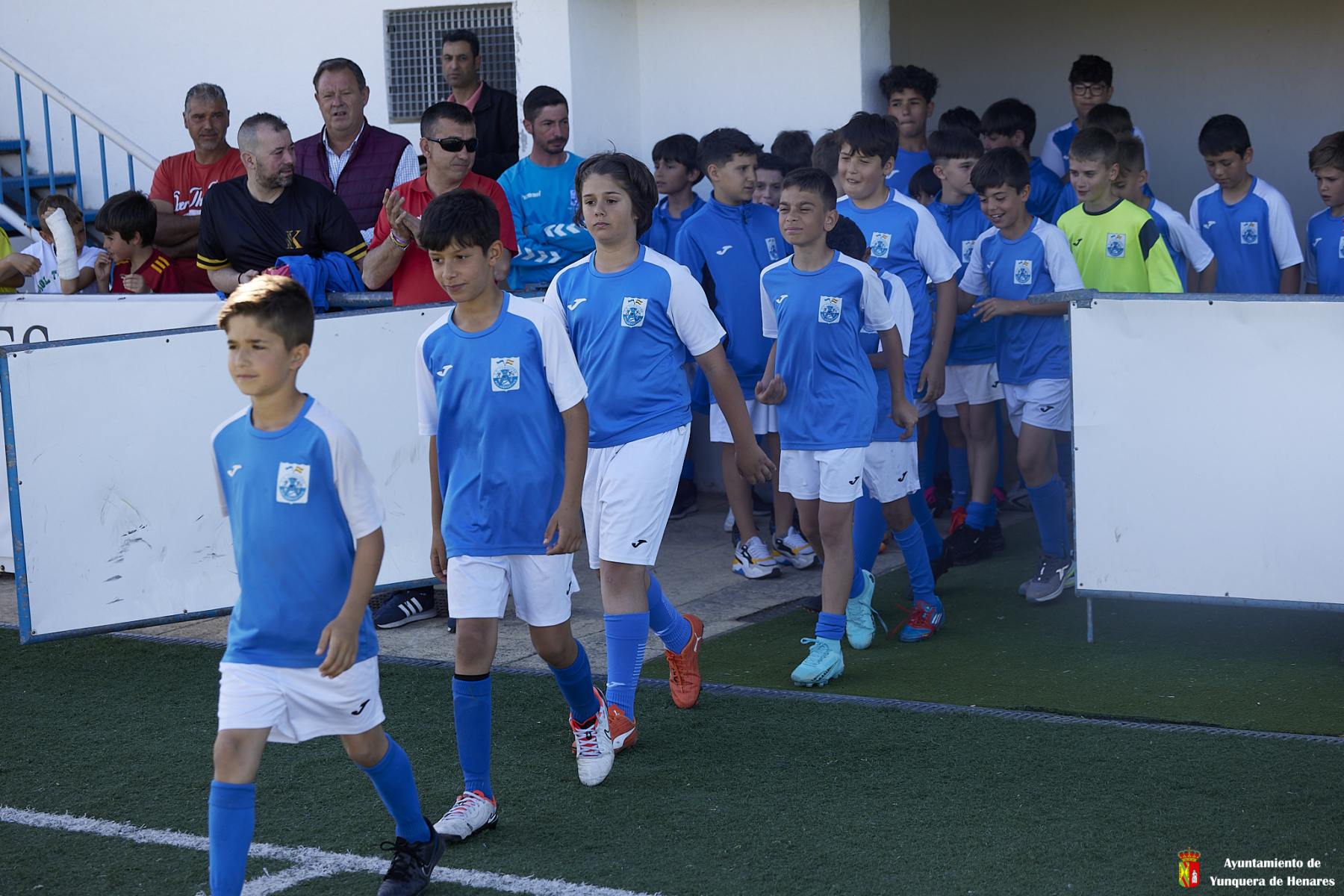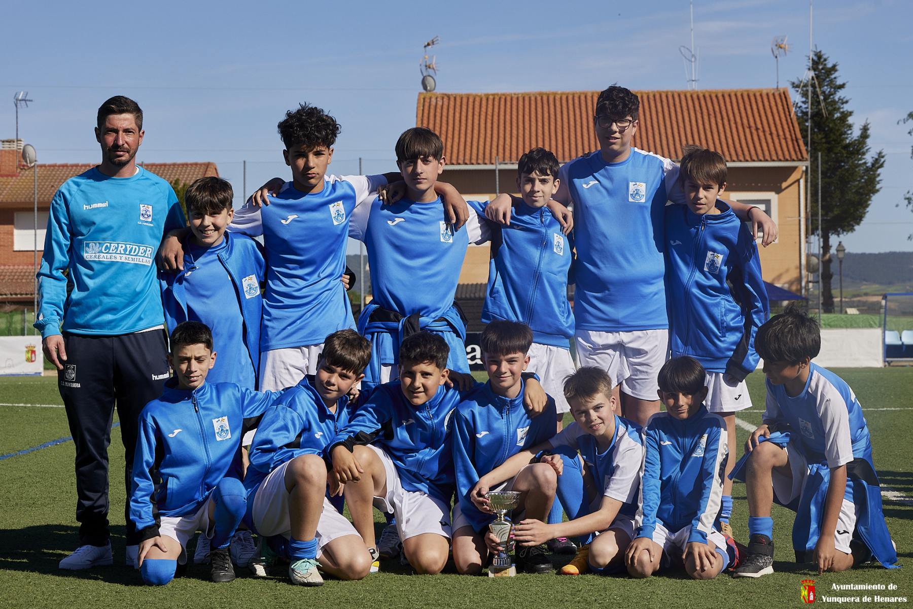En la tarde de ayer el CD Yunquera present贸 los equipos de su cantera: un equipo de benjamines, dos de alevines y dos equipos de infantiles saltaron al c茅sped para posar durante el descanso del partido entre el Yunquera y el Cedillo del Condado, en el que los locales se impusieron por dos goles a uno.