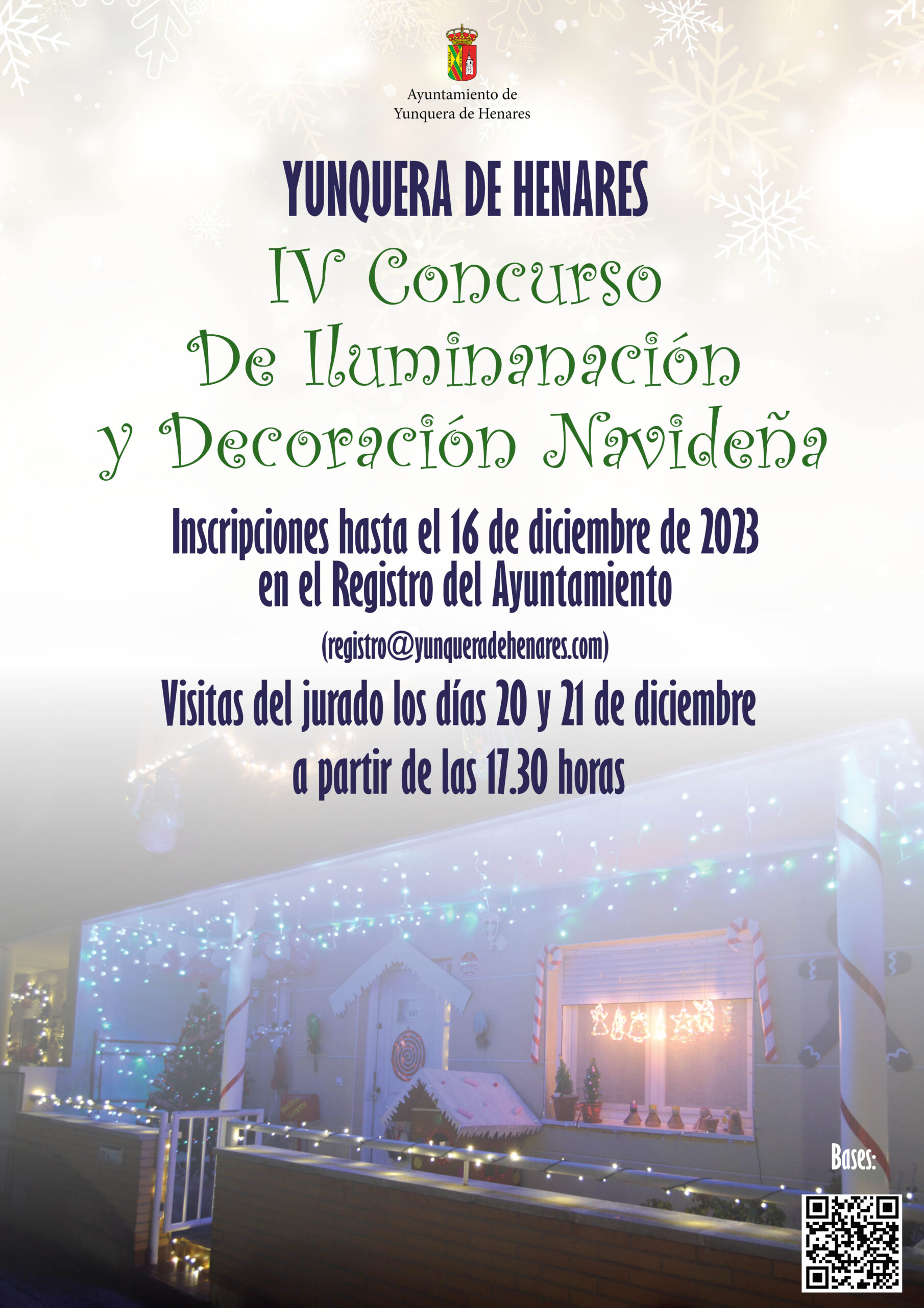 El IV Concurso de iluminación y Decoración Navideña contará con dos categorías, comercios y viviendas y cada una de ellas se repartirá 200 euros al ganador y 100 euros para el segundo. Las inscripciones se tienen que hacer en el registro del ayuntamiento y en registro@yunqueradehenares.com antes del 16 de diciembre. La visita del jurado será el día 20 y 21 de diciembre desde las 17 horas.