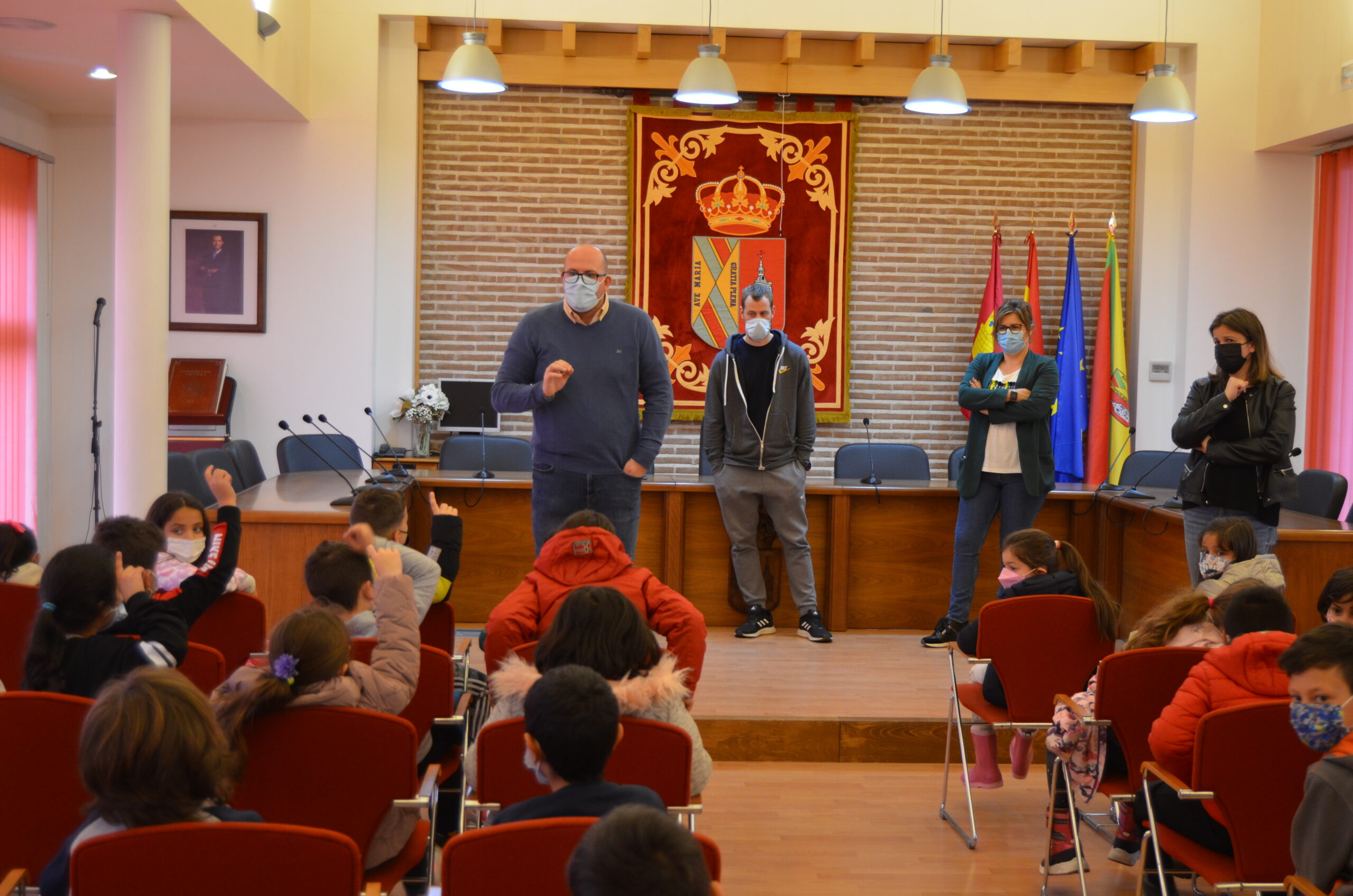 Esta visita responde a un proyecto formativo impulsado por las profesoras del Colegio, con el que han estado aprendiendo sobre Yunquera de Henares, sus símbolos y su Gobierno local.