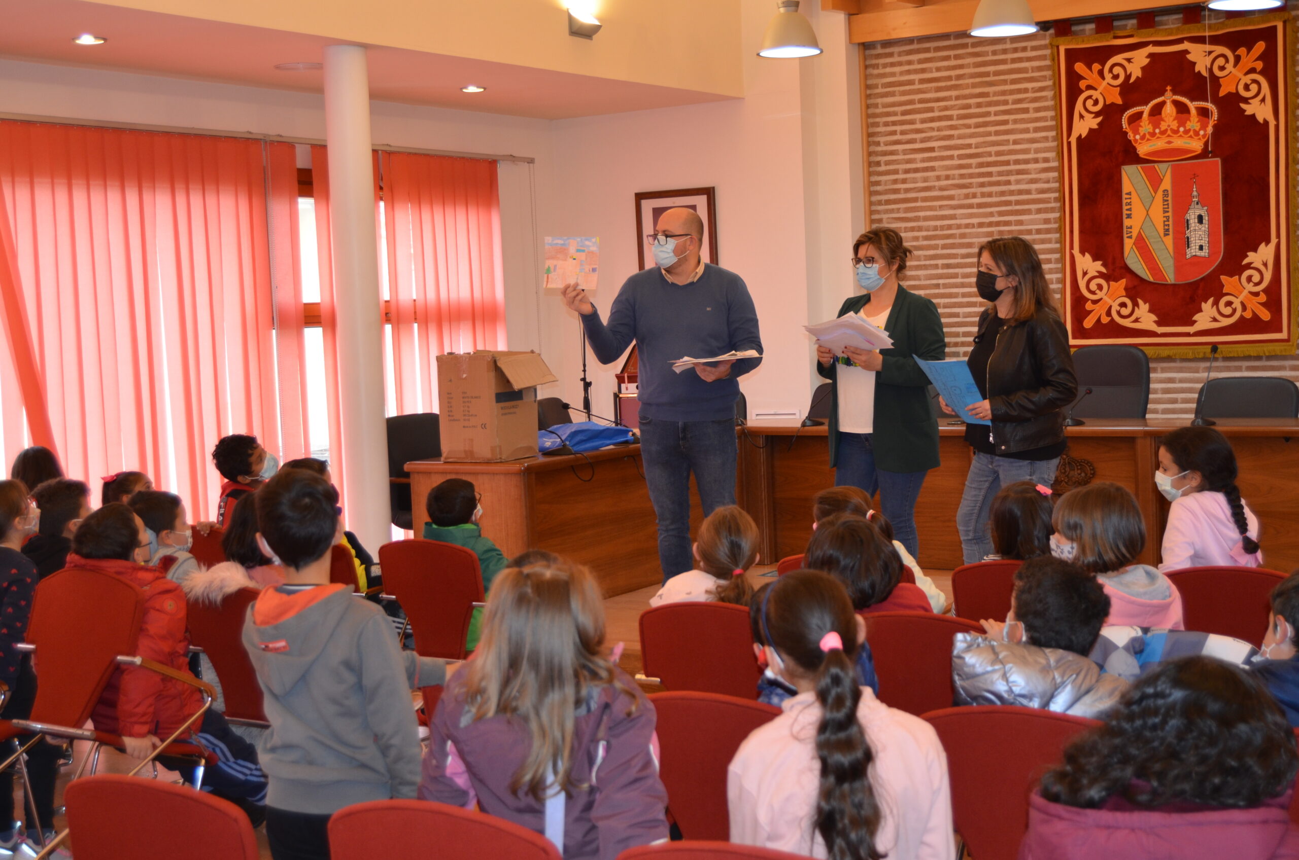 Por su parte, los escolares aprovecharon para realizar diferentes preguntas y peticiones a los miembros del Equipo de Gobierno. Después, les entregaron diferentes dibujos hechos en clase relacionados con el Consistorio.
