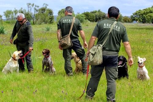 “Están preparados para batir el campo, olfatear y, ante cualquier sospecha, ladrar, sentarse, o tumbarse junto al cebo envenenado o también ante la presencia de algún cadáver envenenado”, señala Fernando Miguel Madrid, coordinador provincial de Agentes Medioambientales, que destaca la destreza de estos canes, que son capaces de encontrar rastros de veneno incluso aunque estén enterrados a cierta distancia de la superficie.