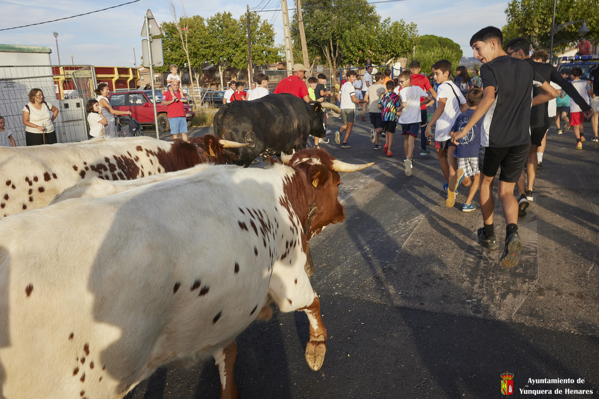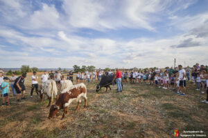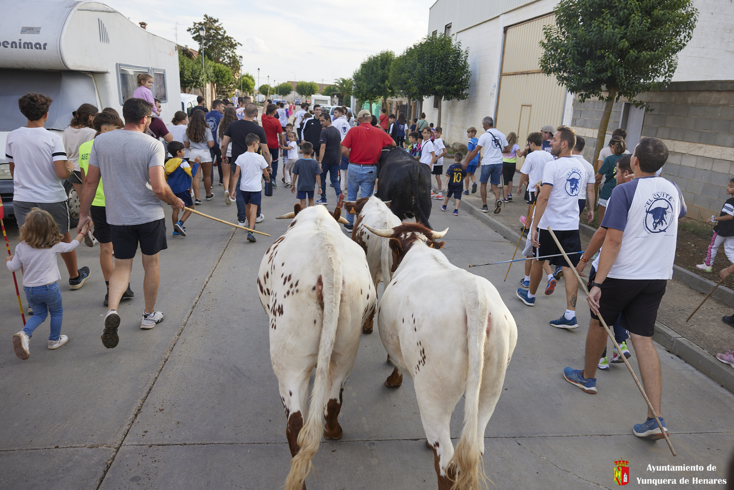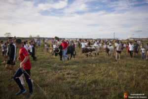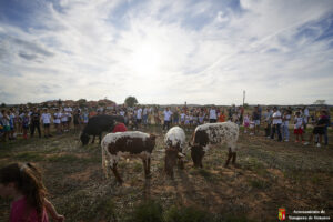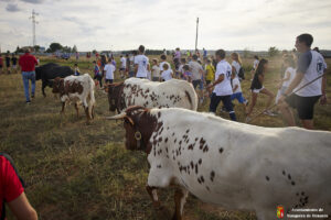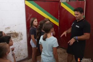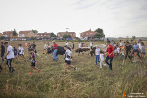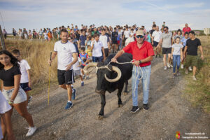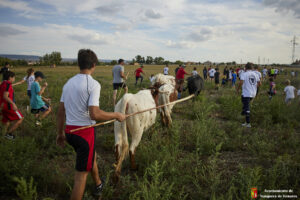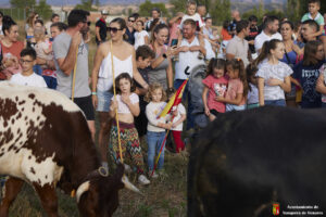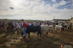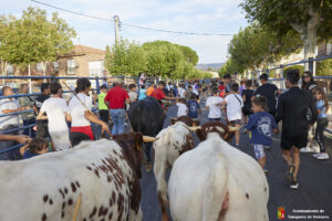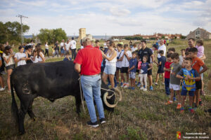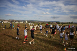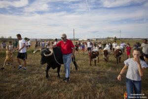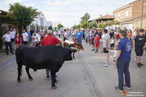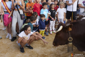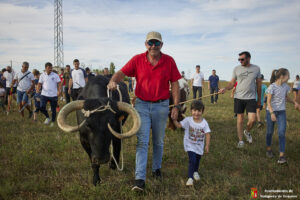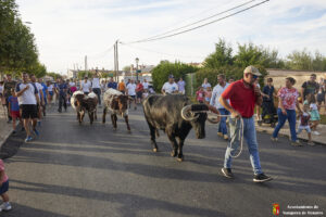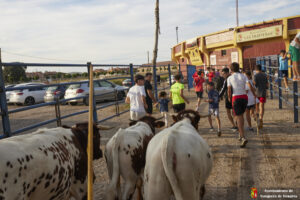 Esta tarde hemos tenido «La Bajada Infantil» desde las inmediaciones del Centro Hípico «Las Espuelas» hacia la Plaza de Toros «Las Traviesas». El ganadero, José luis Ochaita se ha encargado de conducir a los bueyes y a «Angelito», el toro amaestrado de su ganadería. Una vez en el coso, los asistentes han podido ver de primera mano los toriles de la Plaza.