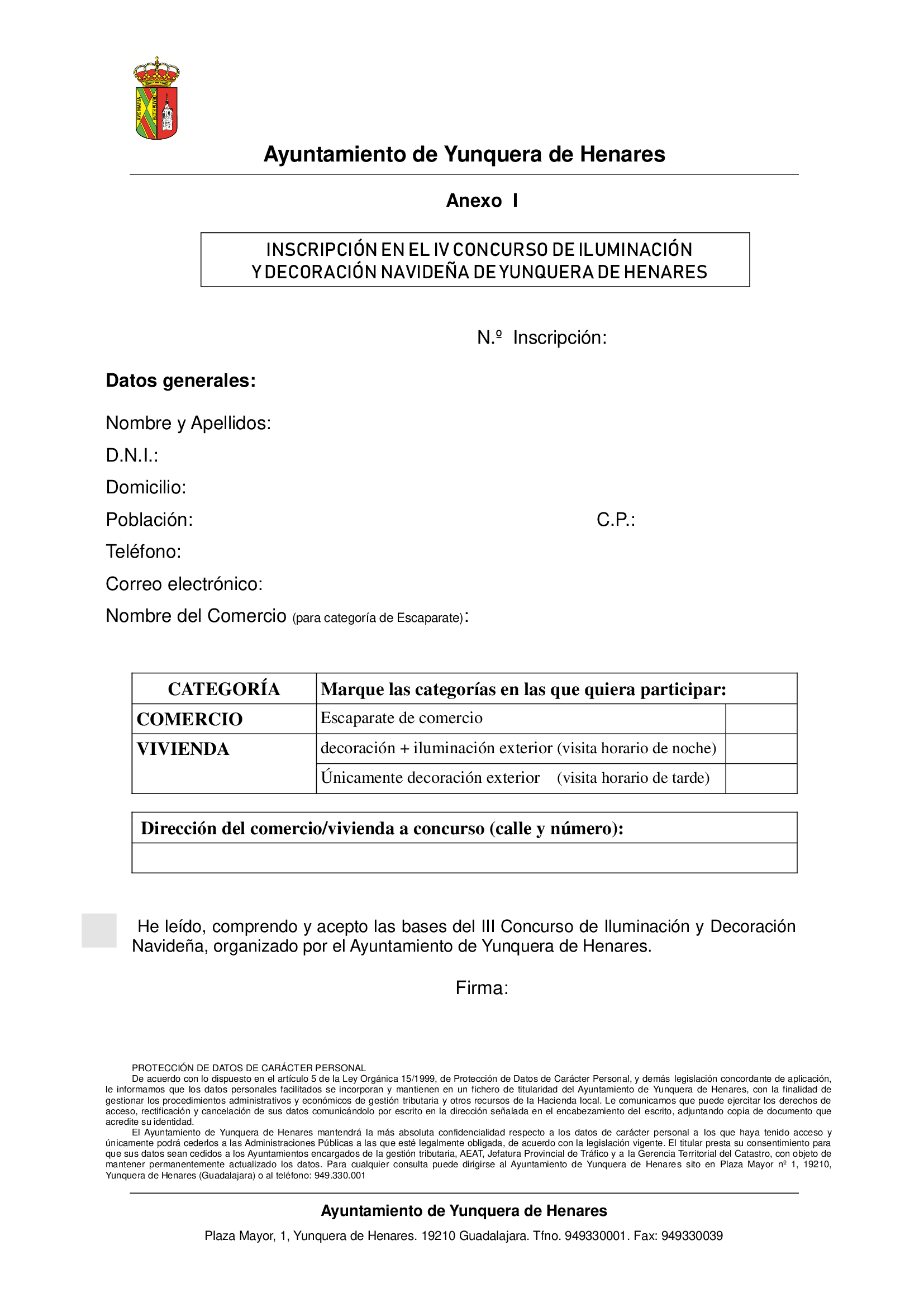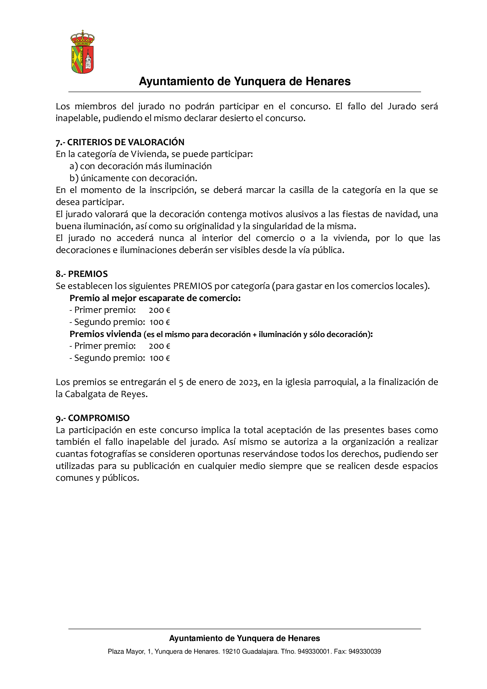 BASES DEL IV CONCURSO DE ILUMINACIÓN Y DECORACIÓN NAVIDEÑA DE YUNQUERA DE HENARES