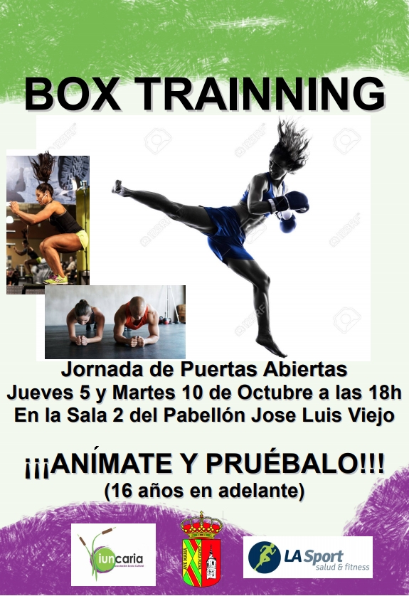 Este jueves, 5 de octubre, y el próximo martes, 10 de octubre, la Asociación Sociocultural Iuncaria, invita a todos aquellos interesados mayores de 16 años que deseen entrenar su cuerpo y mente a conocer este novedoso y divertido sistema de box trainning mediante la jornada de puertas abiertas.