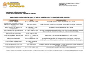 La Escuela Infantil Municipal, presenta el calendario de periodo de admisión, para el curso escolar 2020-2021.