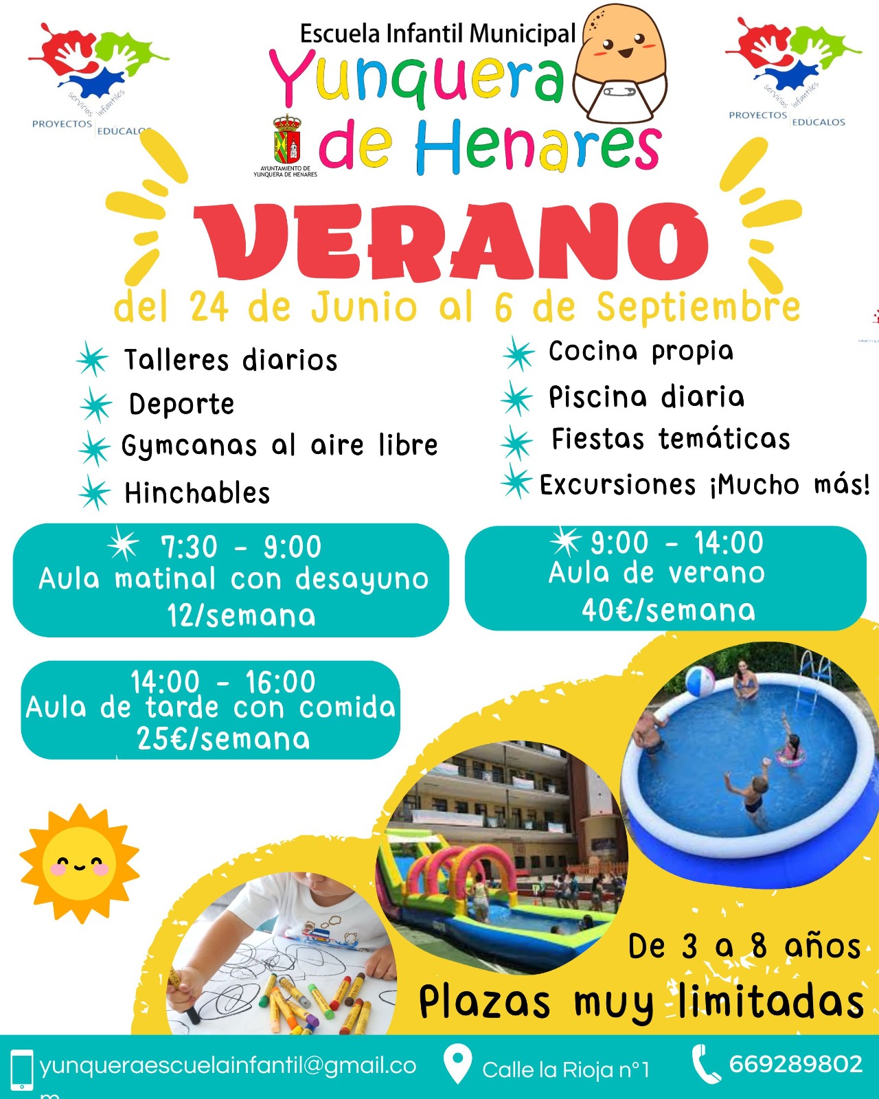 ℹ️ Los interesados solicitar más información o en reservar su plaza pueden hacerlo en yunqueraescuelainfantil@gmail.com o en el teléfono 669 289 802. La escuela infantil está ubicada en la calle La Rioja número 1 de Yunquera de Henares.