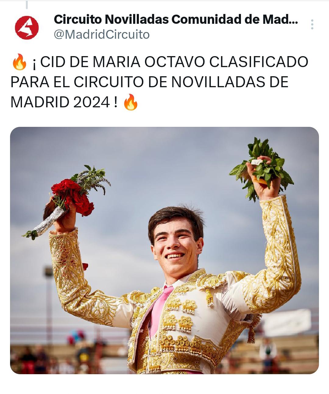 CID DE MARÍA PARTICIPARÁ EN EL CIRCUITO DE NOVILLADAS DE MADRID