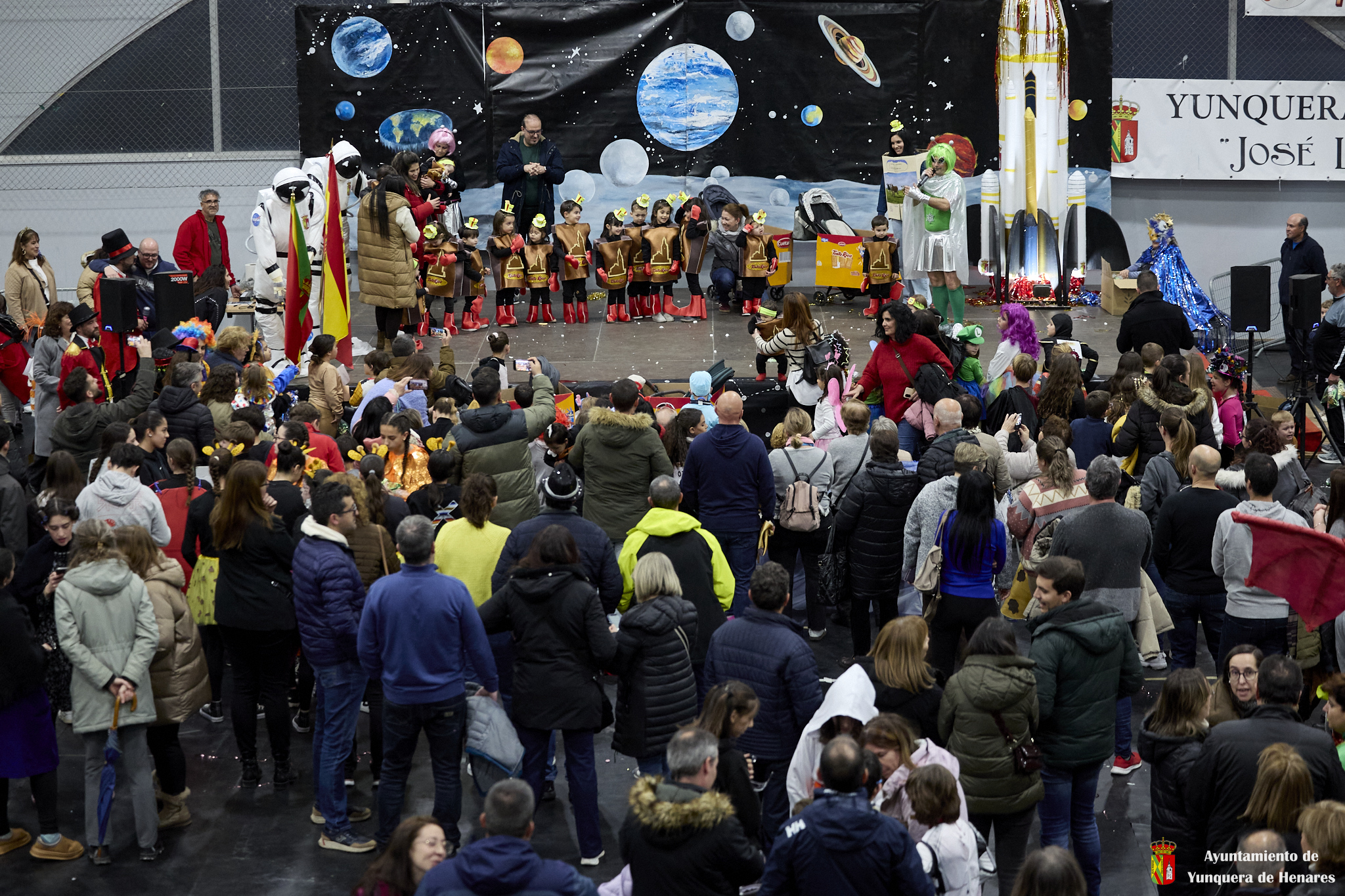 Debido a las inclemencias meteorológicas adversas, el desfile tuvo que desplazarse directamente al pabellón “José Luis Viejo” donde se concentraron todos los participantes, ataviados con sus disfraces. Los más ilusionados, como siempre, han sido los más pequeños que se han disfrazado de personajes de dibujos de Disney, de cuentos o de galletas.