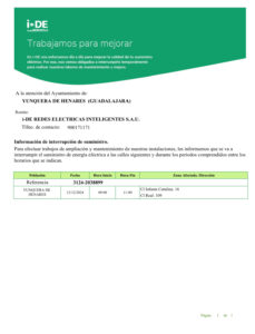 Este jueves d铆a 12 de diciembre se va a producir un corte de suministro el茅ctrico entre las 9:00 y 11:00 horas de la ma帽ana por obras de mantenimiento de IBERDROLA.