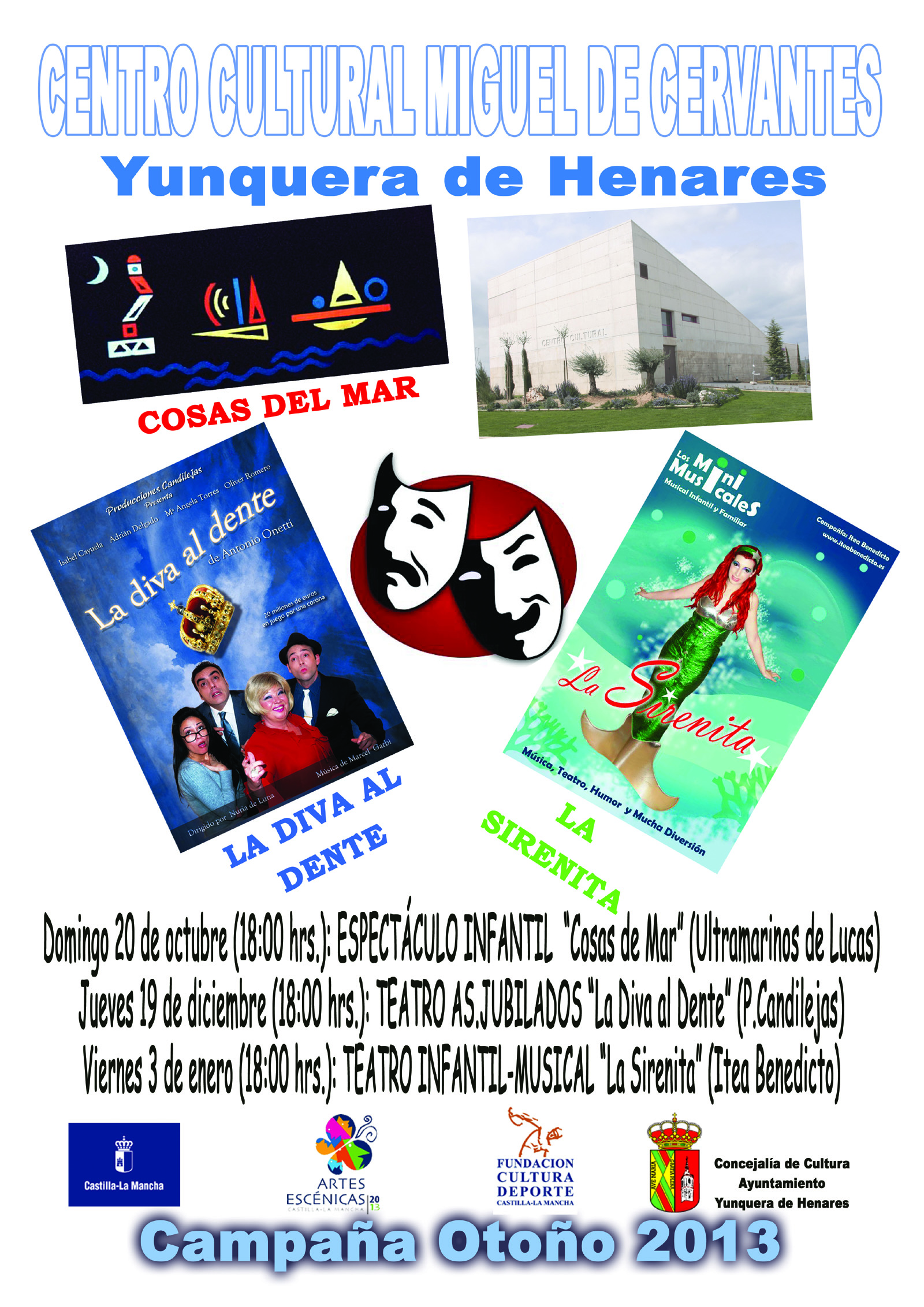 El próximo domingo, 20 de octubre a partir de las 18:00 horas en el Centro Cultural “Miguel de Cervantes” de Yunquera de Henares tendrá lugar la representación de la obra para todos los públicos “Cosas de Mar” representada por la compañía de teatro alcarreña Ultramarinos de Lucas. Dicha obra está encuadrada dentro de la programación de otoño de las Artes Escénicas de Castilla-La Mancha.COSAS DEL MAR propone un viaje imaginativo por el mar a través de formas geométricas de vivos colores, con músicas sugerentes y elementos sorpresivos no exentos de humor, donde se muestra este mundo maravilloso.