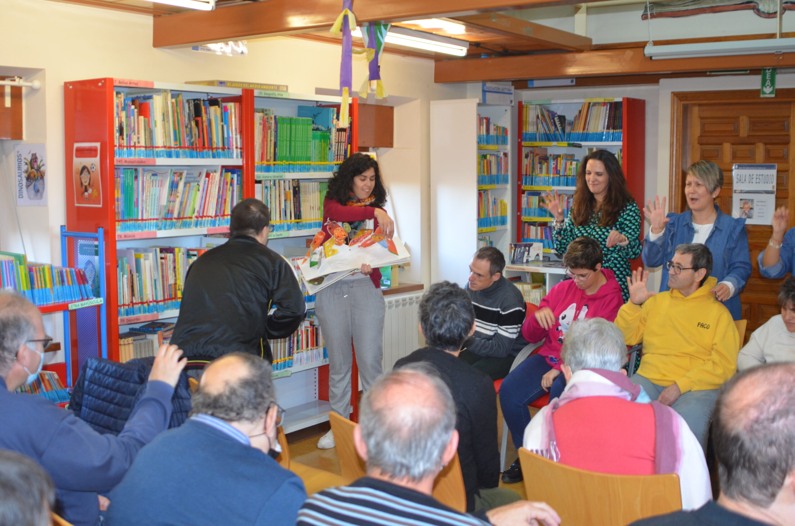 La Biblioteca Pública Municipal era el lugar elegido para la actividad ‘Cuentos para todos’, una iniciativa compuesta por usuarios del CAGID La Chopera y de la propia Biblioteca, que prepara la narración oral de cuentos para contarlos a otros colectivos.