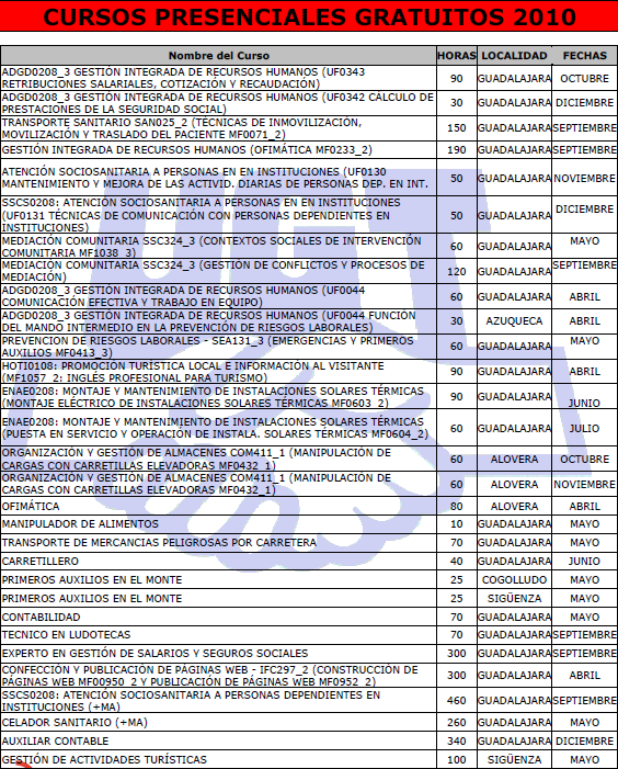 CURSOS PRESENCIALES OFERTADOS POR UGT