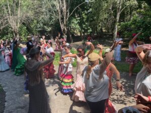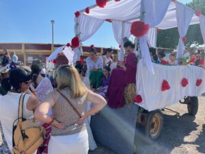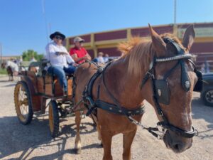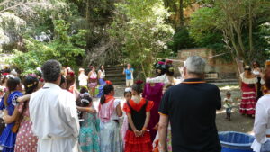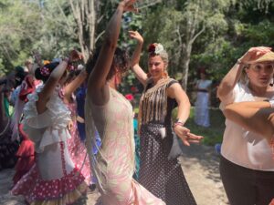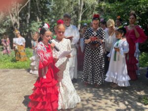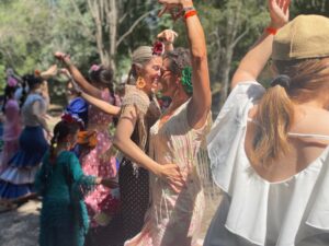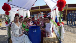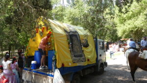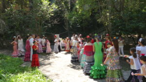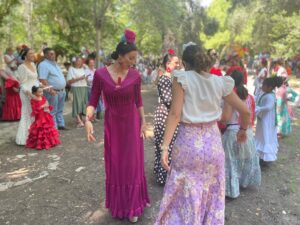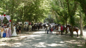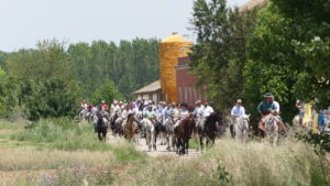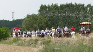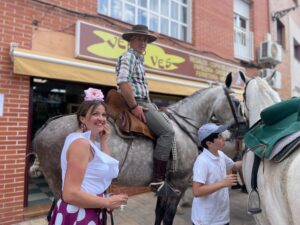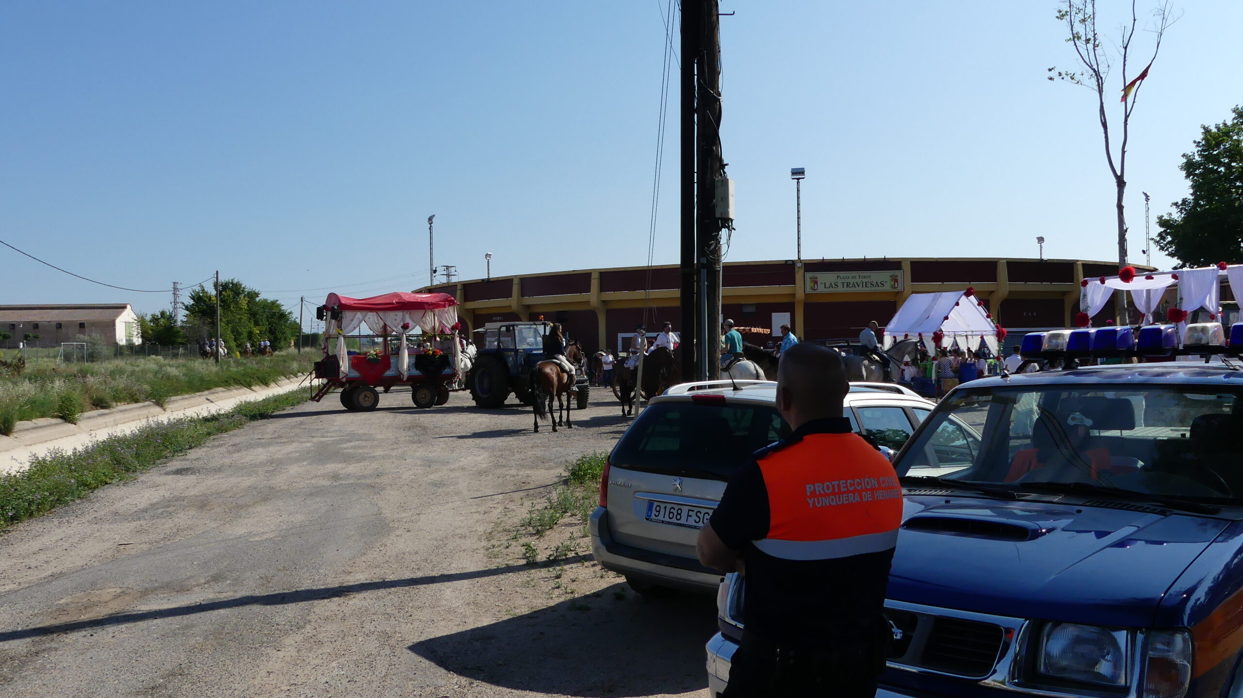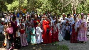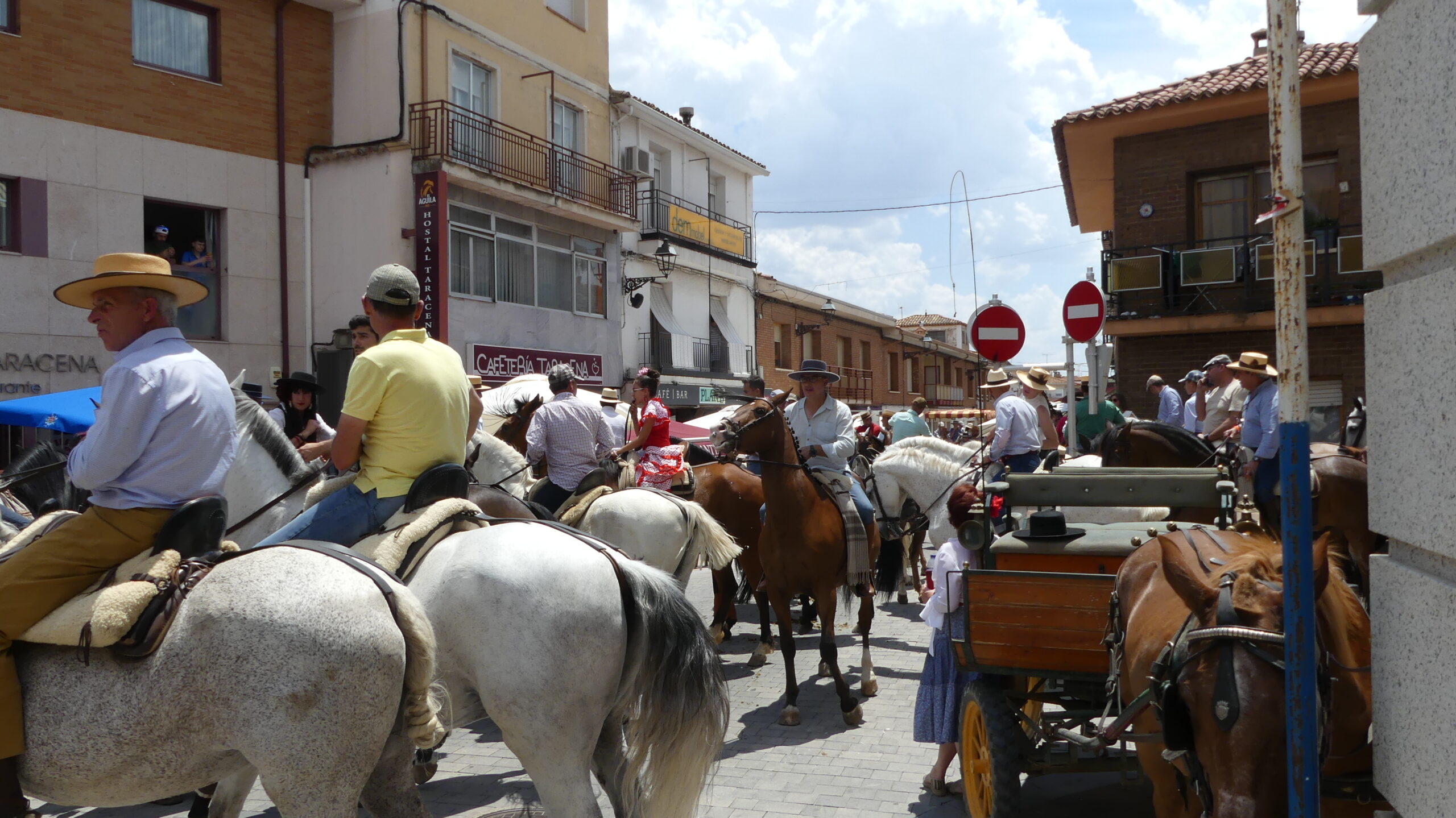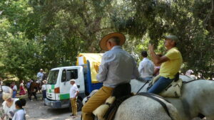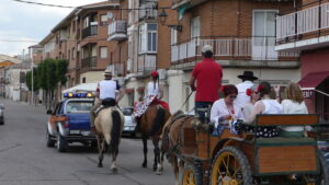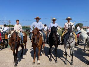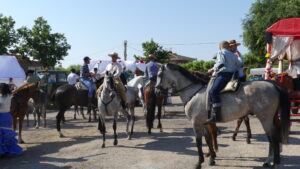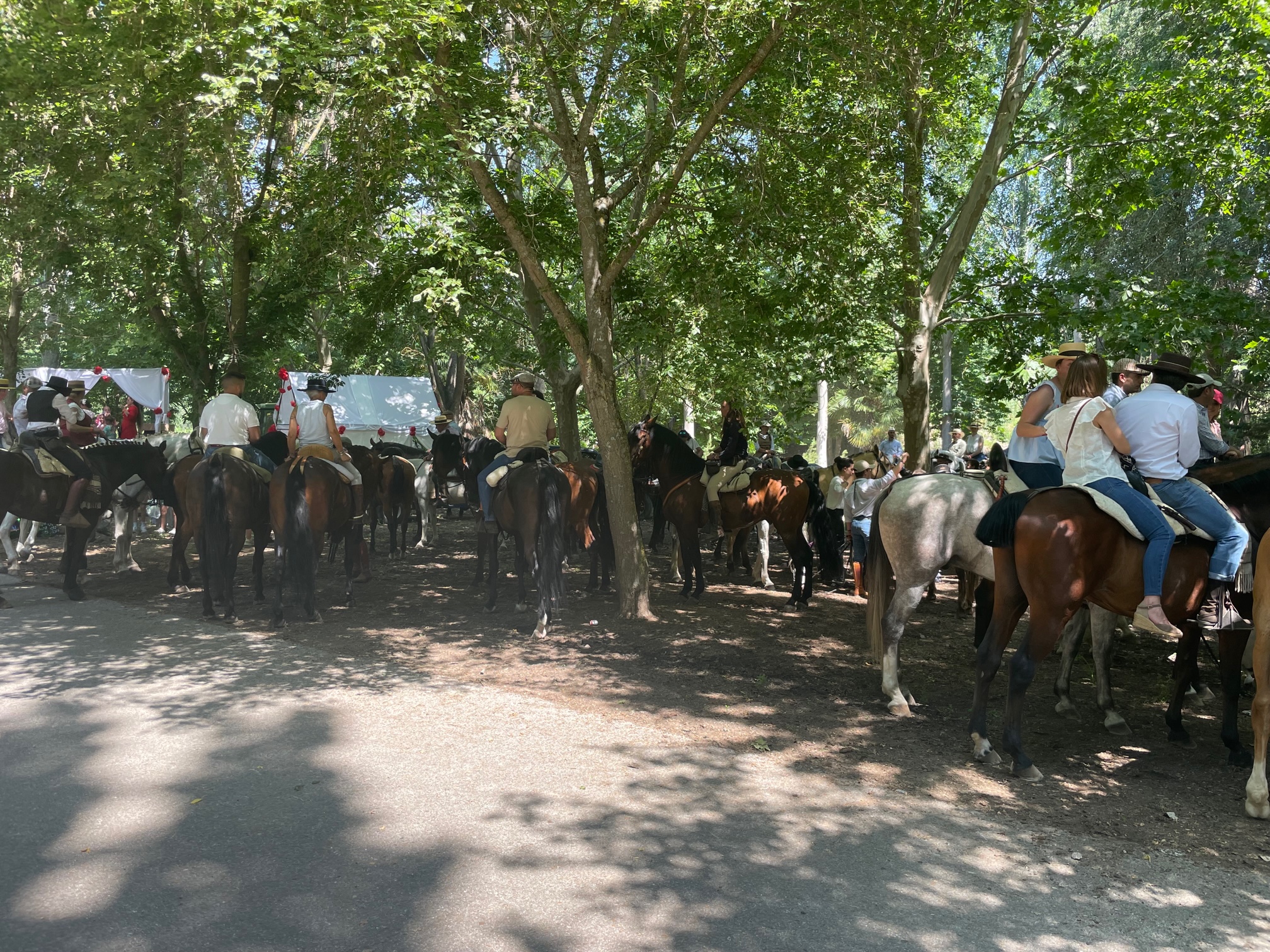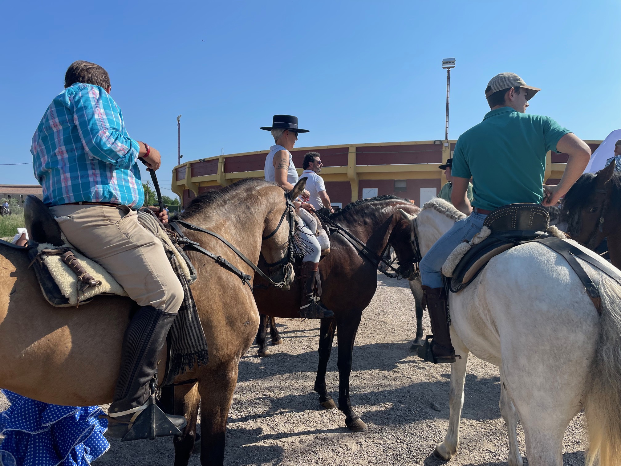 A primera hora de la mañana se empezaban a concentrar los caballistas en la Plaza de Toros «Las Traviesas» para la recogida de credenciales y así iniciar la marcha camino de la Ermita de San Isidro. En este punto acudían jinetes, carrozas, carros y mucho ambiente andaluz gracias a los vestidos de sevillanas que portaban las mujeres.