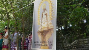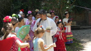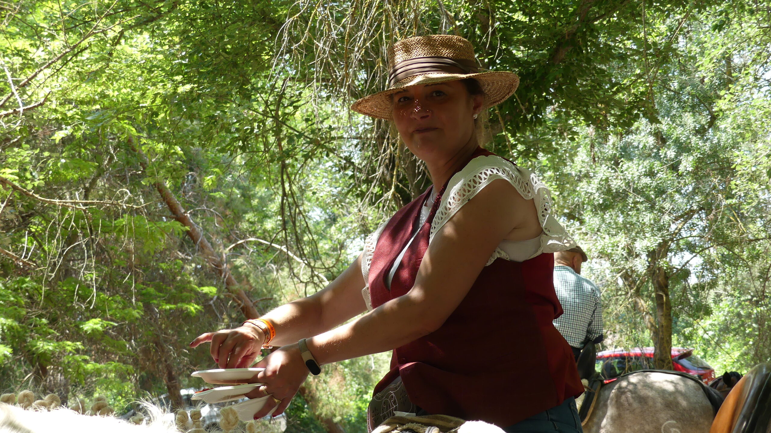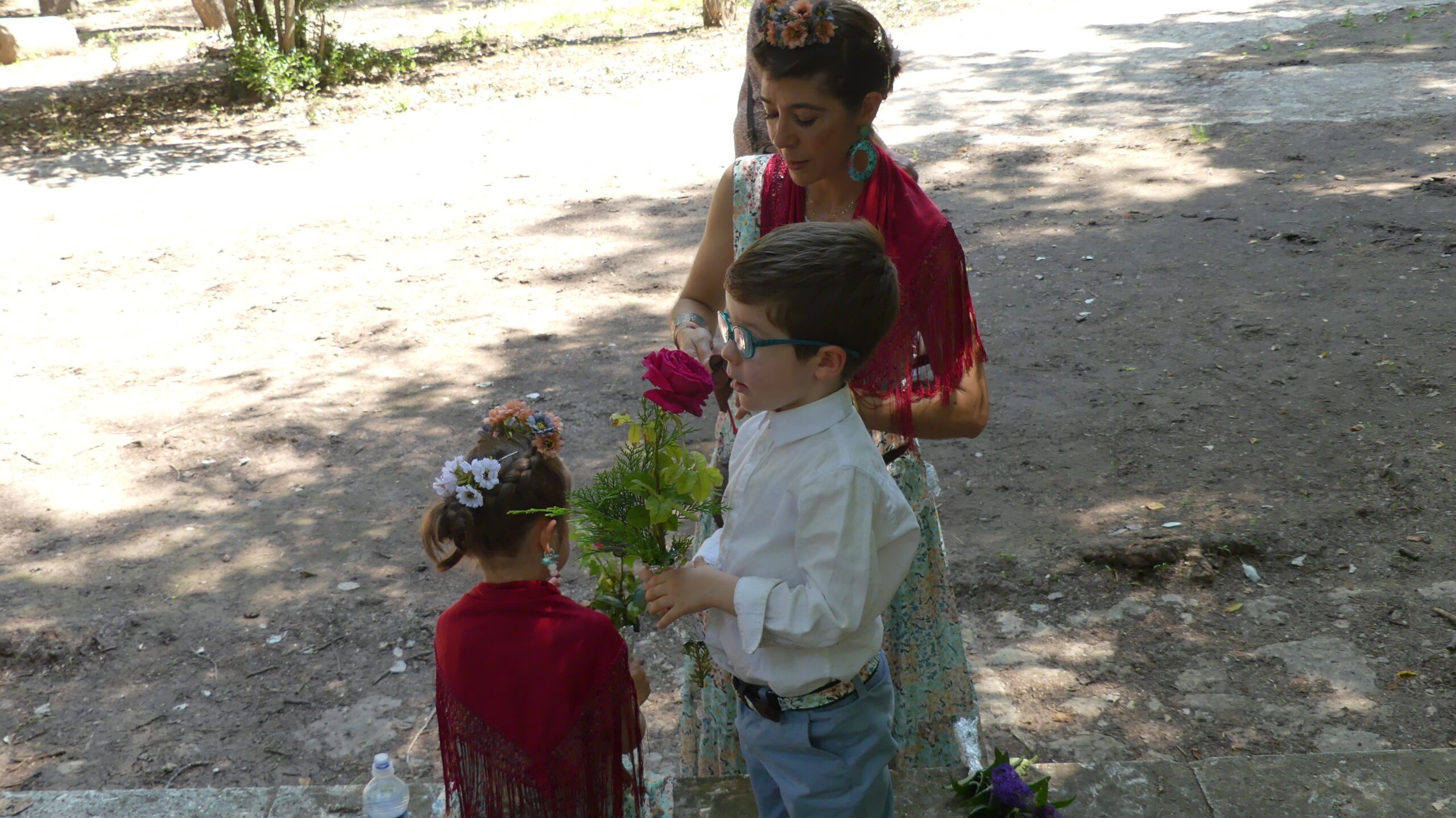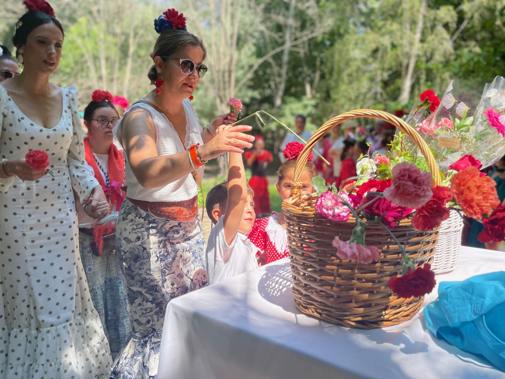 La primera de las paradas ha sido la ermita de San Isidro, en donde los participantes han disfrutado del primero de los tentempiés de la jornada. Minutos más tarde la comitiva salía camino de la ermita de Virgen de la Granja. Este momento es el más especial de la jornada ya que se realiza la ofrenda floral a la Virgen oficiada por el párroco, José Benito.