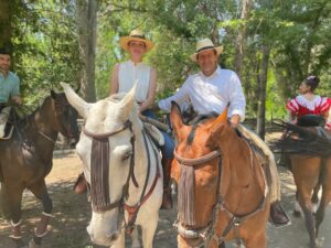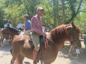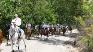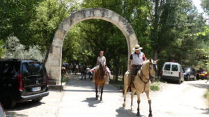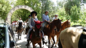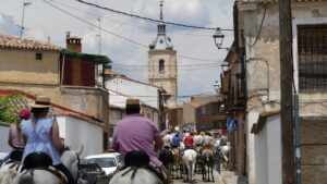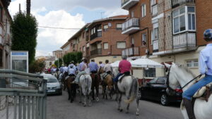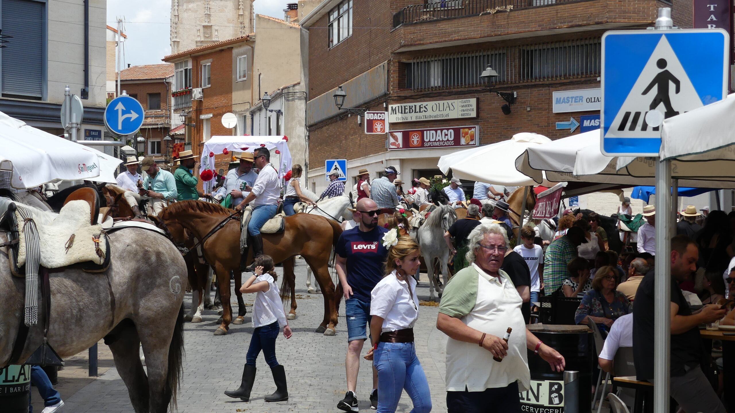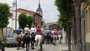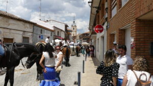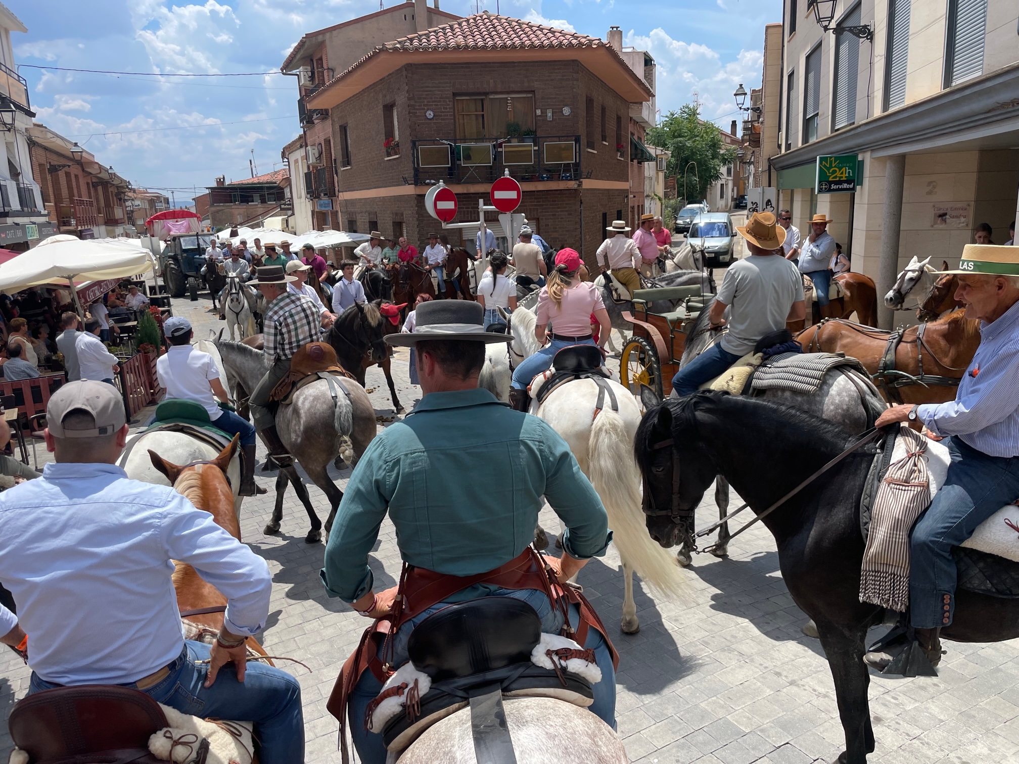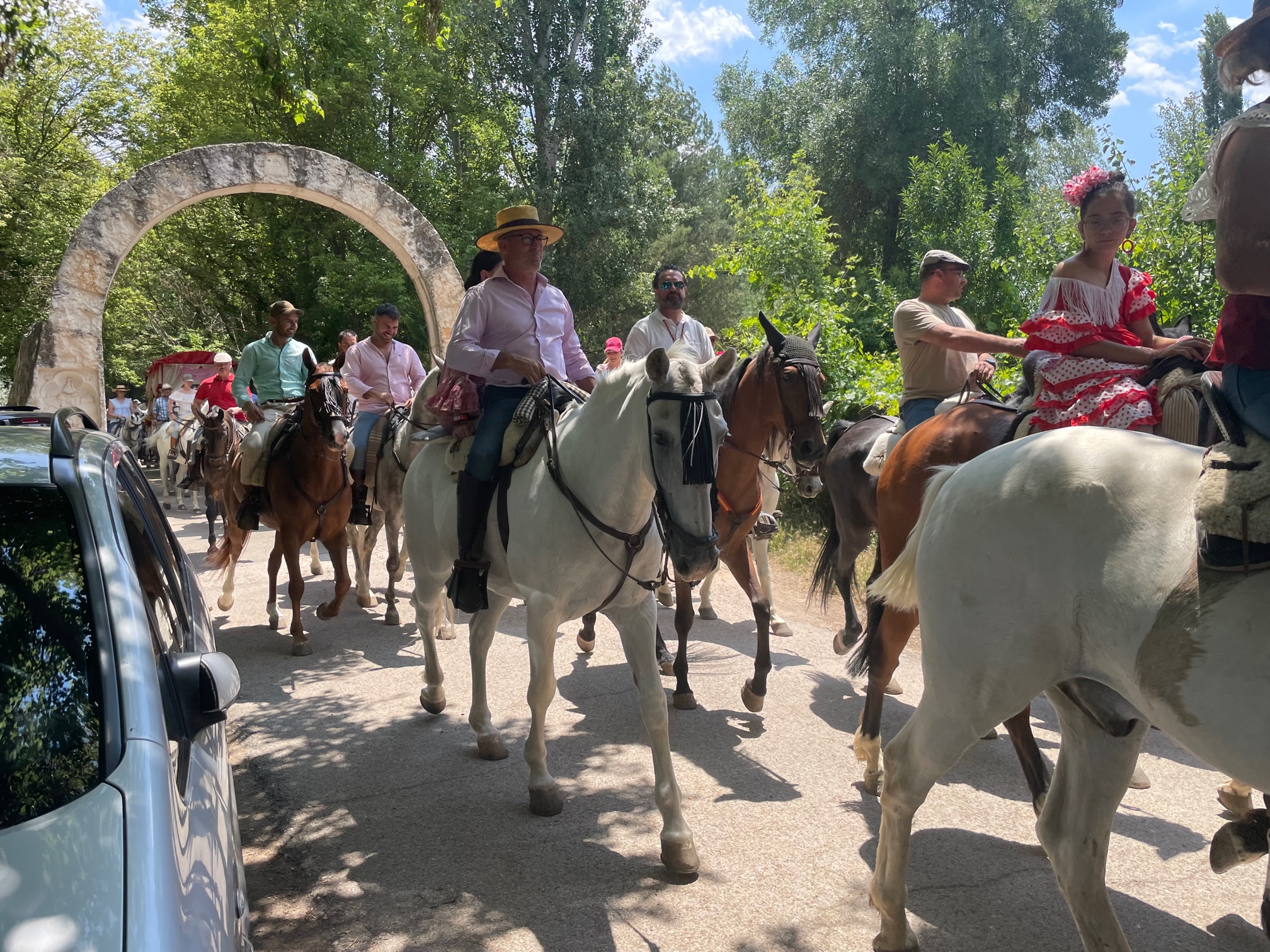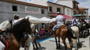 Una vez realizada la ofrenda, bailadas unas sevillanas y tomar algún refresco la expedición volvía al municipio para vivir una de las imágenes simpáticas de la romería, en donde decenas de caballos y jinetes participan en el vermú en los bares del municipio con los vecinos de Yunquera de Henares.