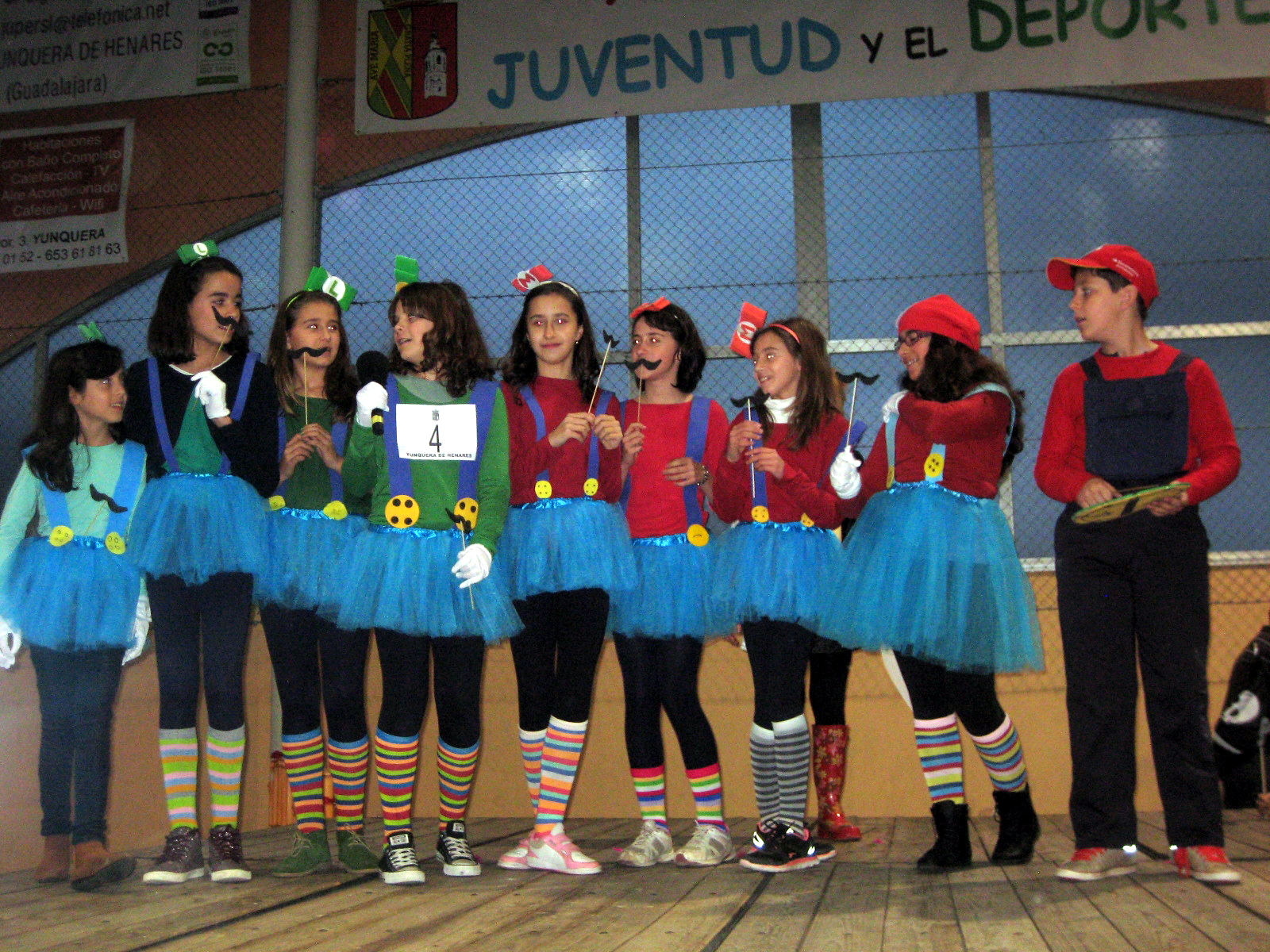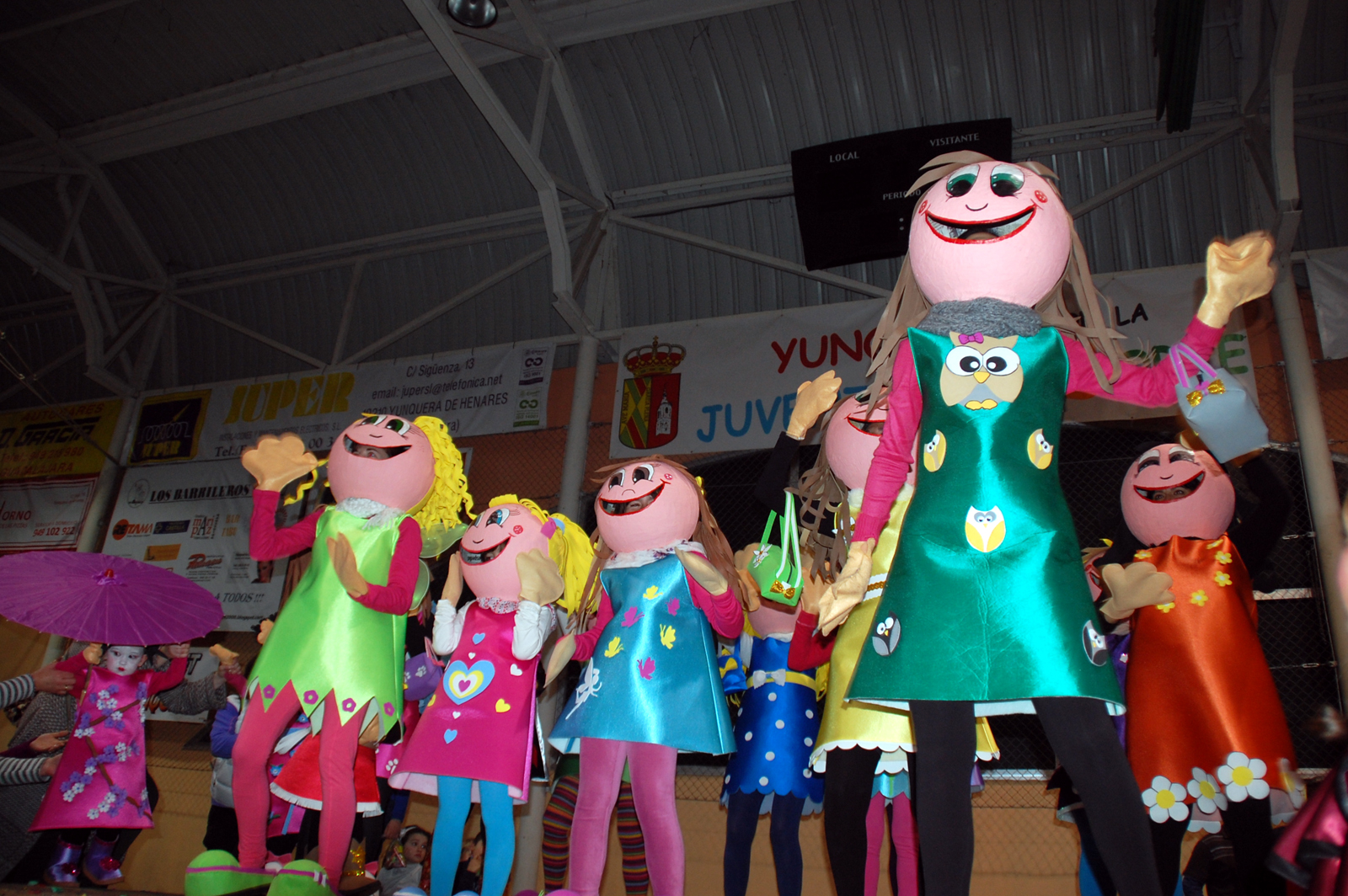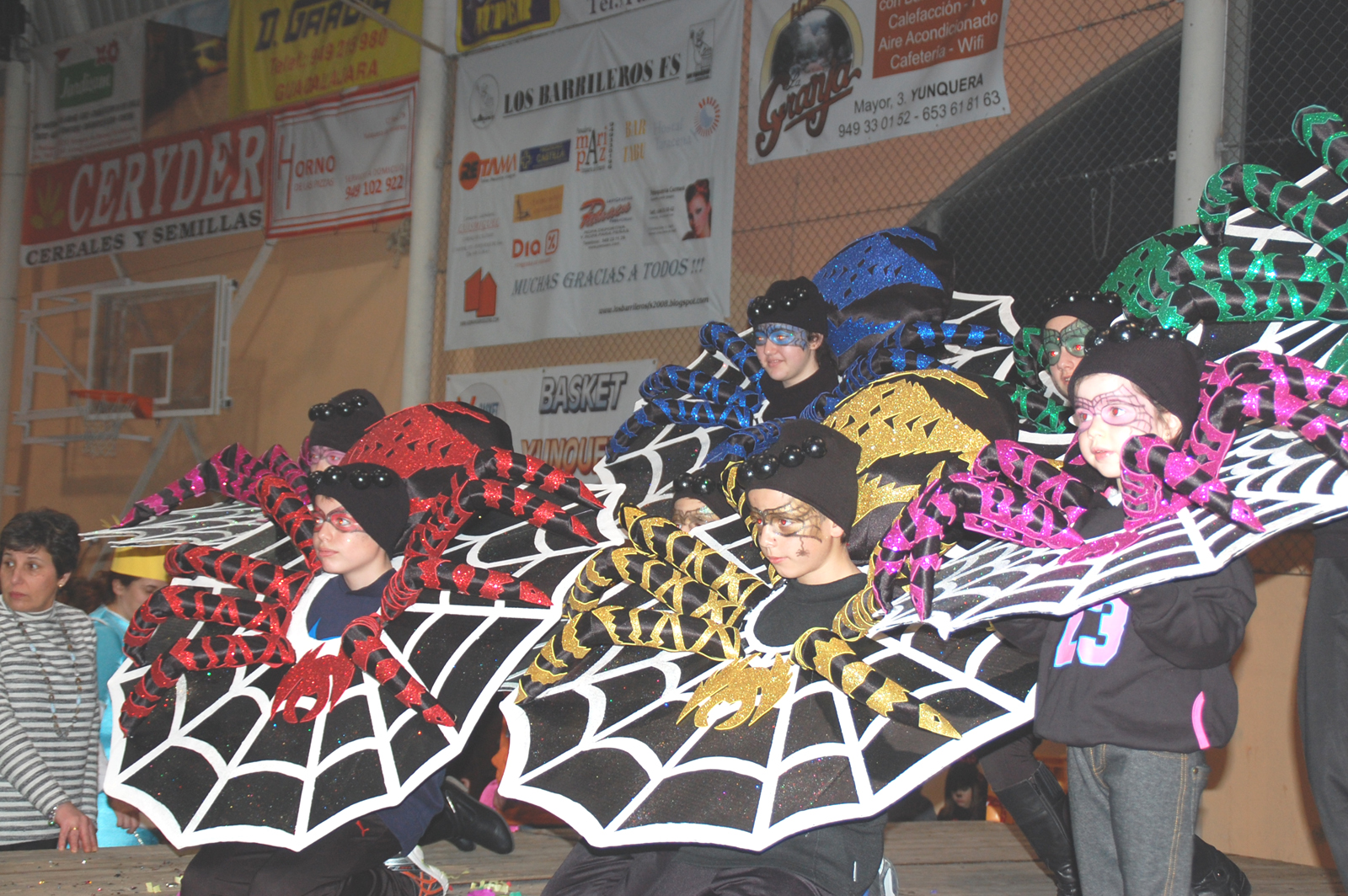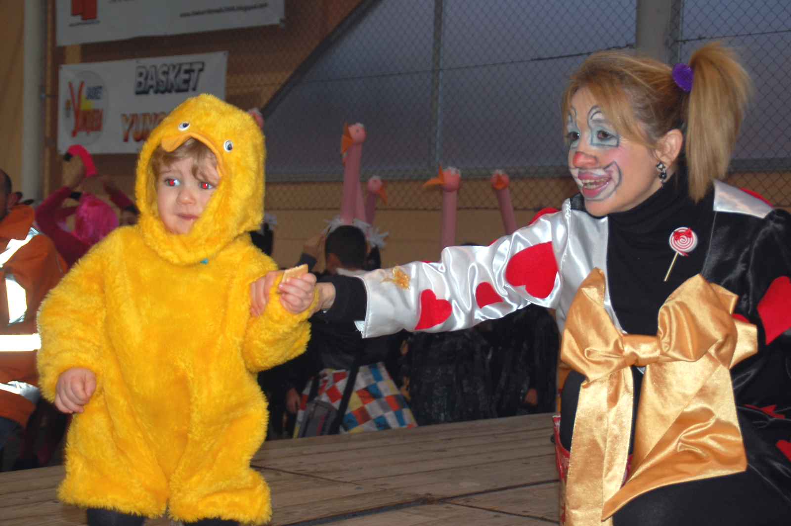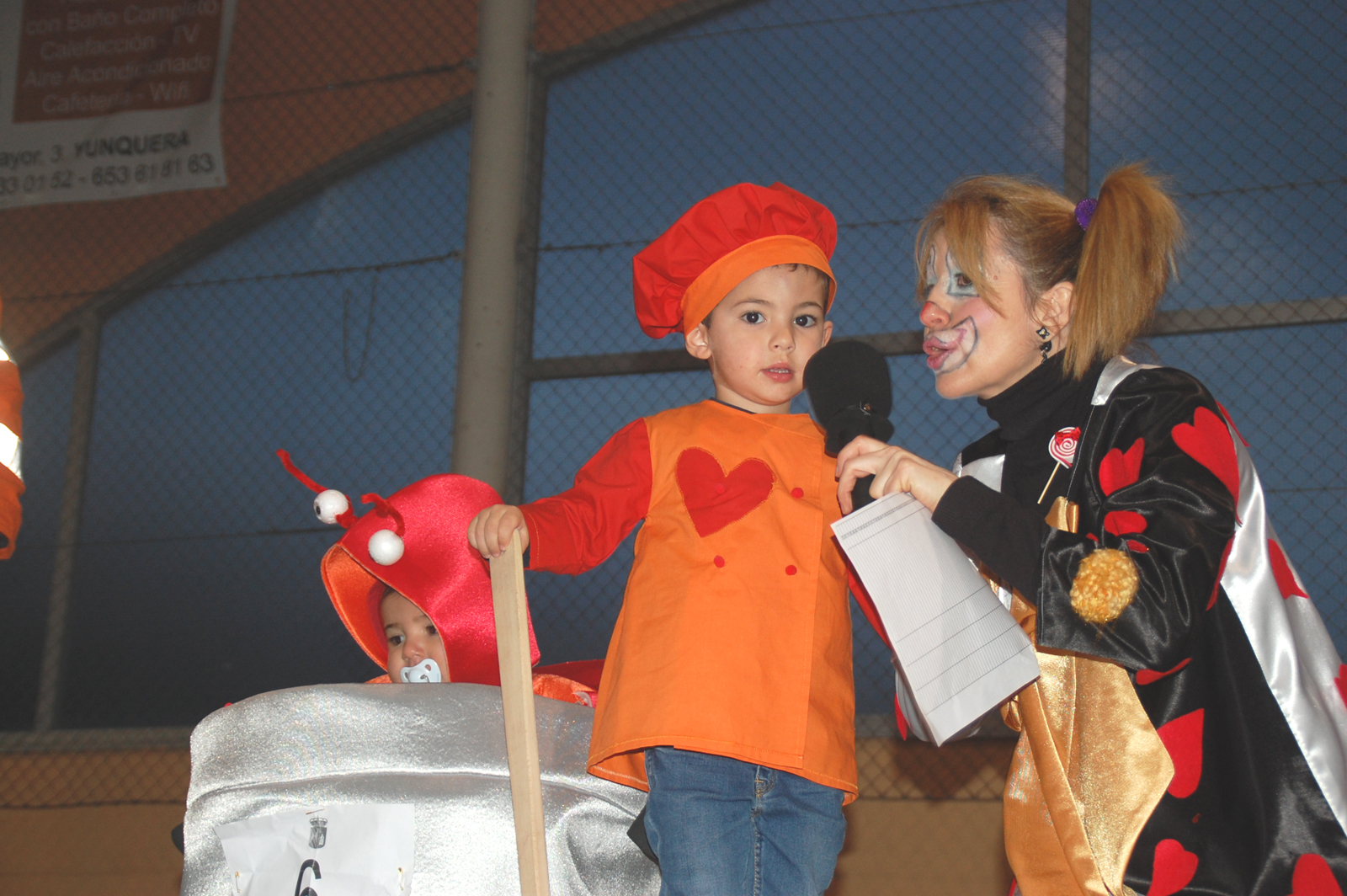 Una vez en el recinto deportivo, dió comienzo el tradicional concurso de disfraces presentado por la simpatica concejala Esther Gutierrez Machuca que lució un bonito look de payaso. Uno a uno tanto los disfraces individuales como de los grupos inscritos fueron desfilando por el escenario para que el jurado, compuesto por representantes de asociaciones y clubes locales, pudiera valorar debidamente con sus votaciones, la puesta en escena y los modelos que lucían todos los participantes. A continuación, mientras el jurado hacia el recuento de los votos, todos los asistentes pudieron reponer fuerzas degustando pan con chorizo y limonada y al mismo tiempo disfrutaron de acordes carnavalescos.