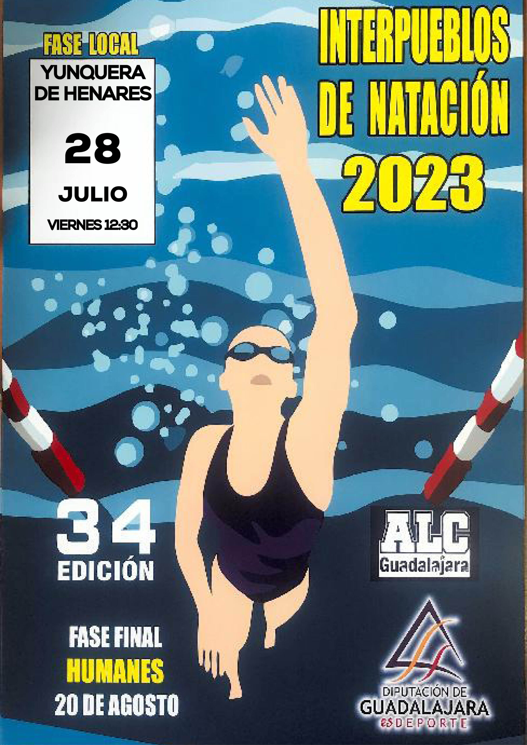 Desde estos días se ha puesto en marcha una nueva edición del Campeonato Interpueblos de Natación, que organiza la Diputación, en 43 pueblos de Guadalajara. El próximo viernes 28 de julio a las 12:30 de la mañana hará parada en Yunquera de Henares.
