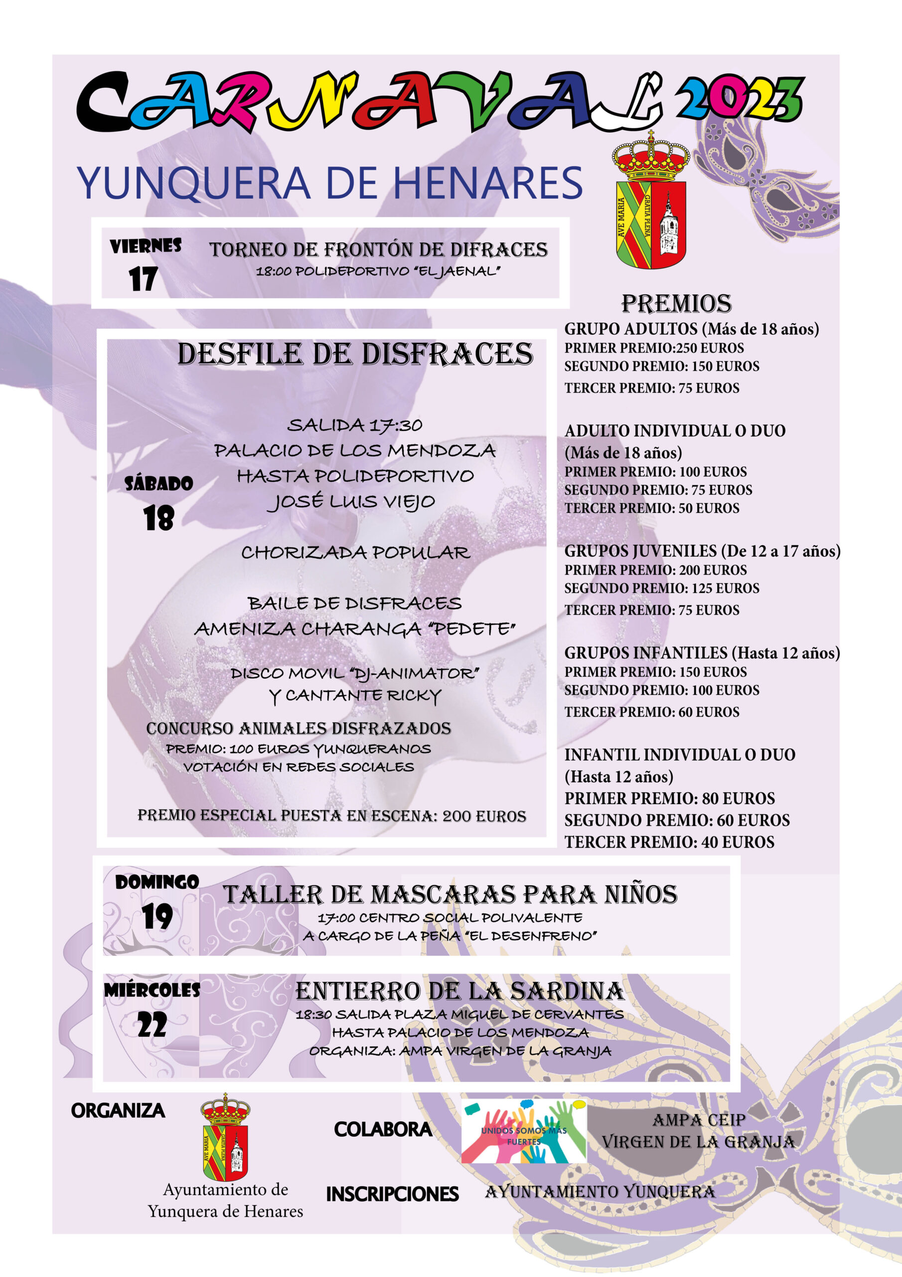 Yunquera de Henares ha preparado un amplio programa de actividades de carnaval para todos los públicos desde el 17 de febrero hasta el 22.