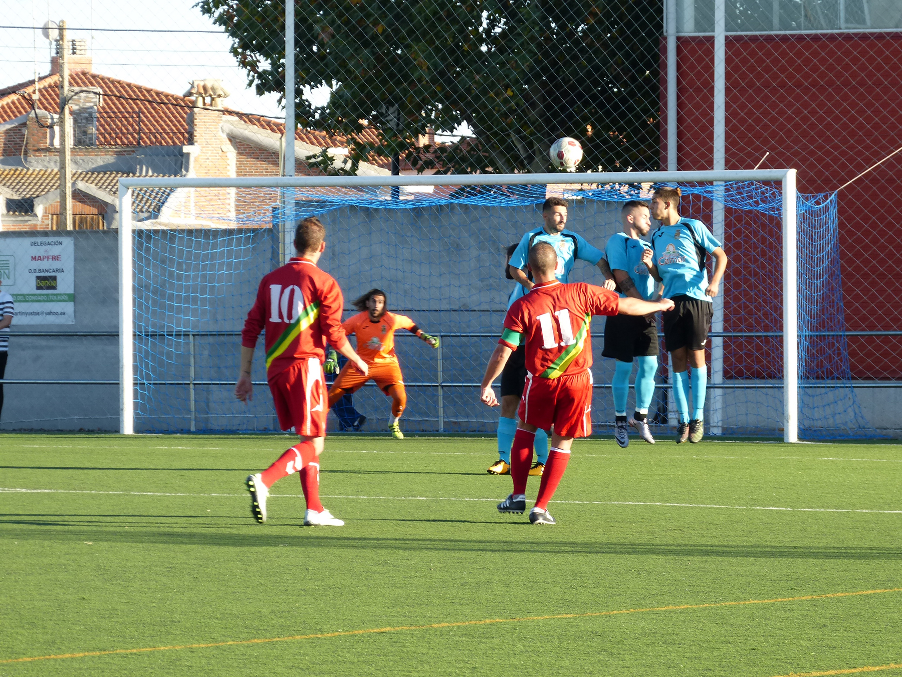 Con este patrón de juego y los azulones achicando balones fueron transcurriendo los minutos hasta que, en el veintiocho, una falta lanzada desde fuera del área por los locales se transformaba en el gol del empate tras tocar el balón en un hombre de la barrera y posteriormente dar en el palo desviando su trayectoria y llegar al fondo de las mallas haciendo inútil la estirada de Alberto. Era el empate a uno que caía como un jarro de agua fría y máxime cuando a los cuatro minutos los locales al lanzamiento de un saque de esquina daban la vuelta al marcador gracias a un gol en propia meta de Javier Robledo, en su intento de alejar el peligro.