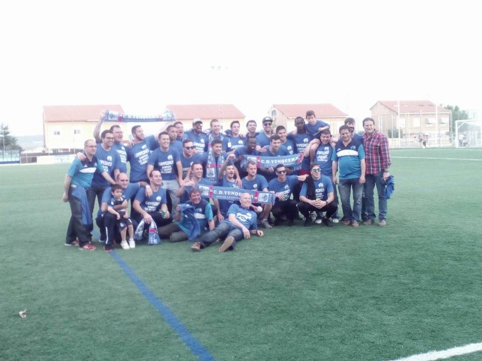 Cabe destacar que tras el pitido final los jugadores se fundieron en un emocionante abrazo saludando posteriormente a esa afición yunquerana que tan fielmente les ha acompañado y animado a lo largo del campeonato, mostrando una pancarta en la que se podía leer: GRACIAS AFICIÓN – JUNTOS LO HEMOS LOGRADO, slogan este último, que también se encontraba estampado junto a la palabra CAMPEONES en las camisetas que lucían todos los miembros de la plantilla y que el Club Deportivo Yunquera había encargado para tan bonita ocasión.