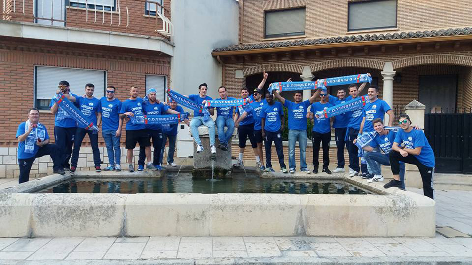 Plantilla, cuerpo técnico, directivos y seguidores pudieron disfrutar en la tarde noche del sábado de una fiesta organizada por los jugadores en la que corrió la cerveza y que por supuesto no faltó la música en directo de una charanga para amenizar la velada no sin antes hacer la visita obligada a la fuente de las celebraciones yunquerana conocida como la de “los cuatro caños”…