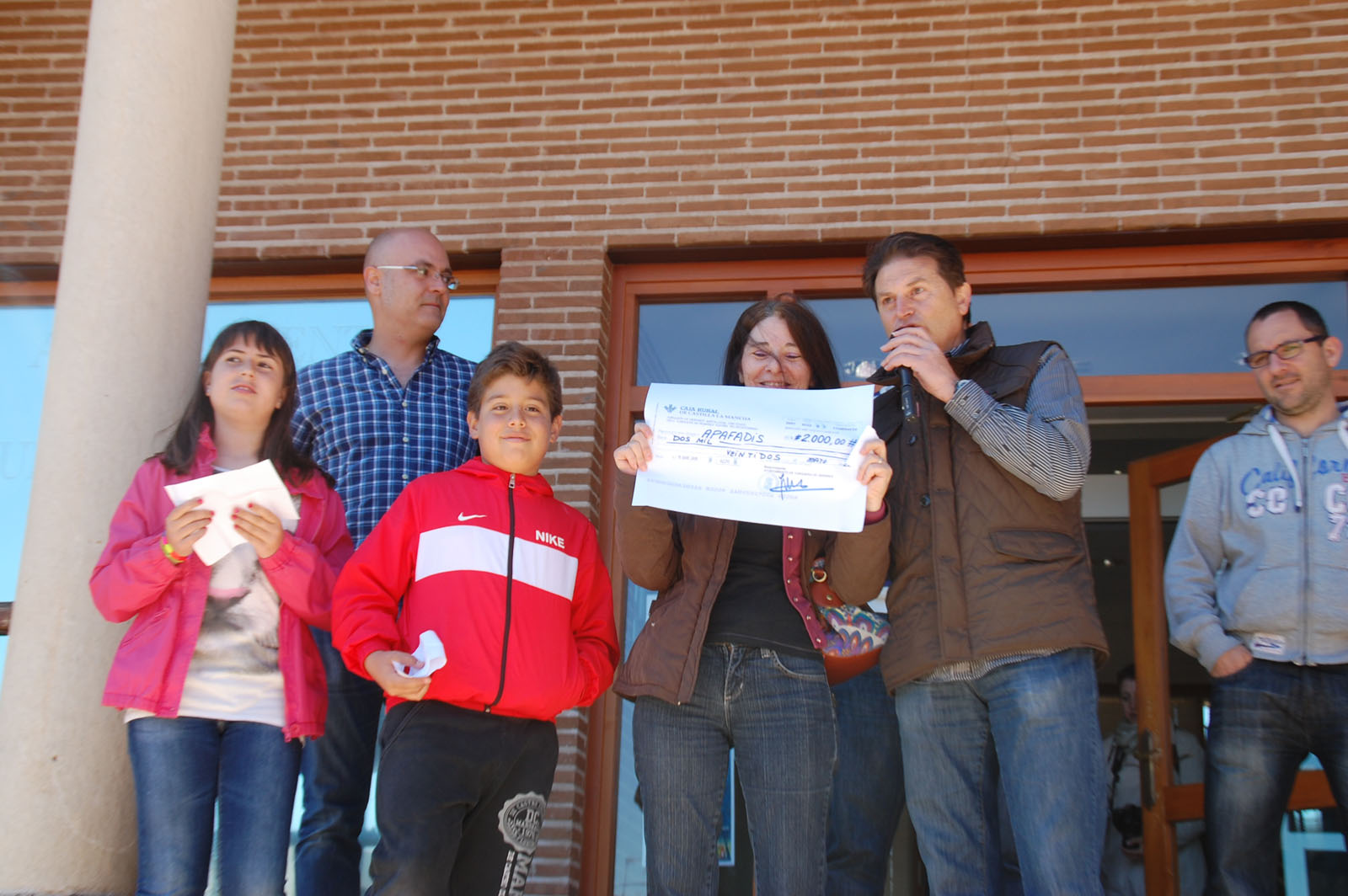 A continuación, Ana Isabel Caja, como presidenta de APAFADIS, recibía de manos del primer edil yunquerano y en representación del Ayuntamiento, un talón por 2.000 euros correspondiente a un remanente de la Feria del Caballo ECUALTUR 2014 y cuyo fin son clases terapéuticas a caballo para pacientes. Por ello dio las gracias, y se dirigió a todos los presentes animándoles en la continuidad en este tipo de iniciativas de integración con un sincero “enhorabuena”. Después y como viene siendo habitual todas las personas congregadas en el patio del Palacio de los Mendoza se unieron para bailar el tema de Macaco “Marea de Gente”, musica que se ha convertido en el que podíamos llamar himno de la marcha por la integración en Yunquera de Henares.
