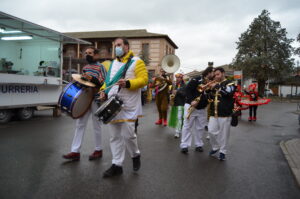 La fiesta comenzó en el Palacio de los Mendoza, en cuyo patio se concentraron todos los participantes del desfile, ataviados con sus disfraces. Desde allí, al ritmo de la enérgica charanga, partieron por las principales calles de la localidad hasta el Pabellón ‘José Luis Viejo’.
