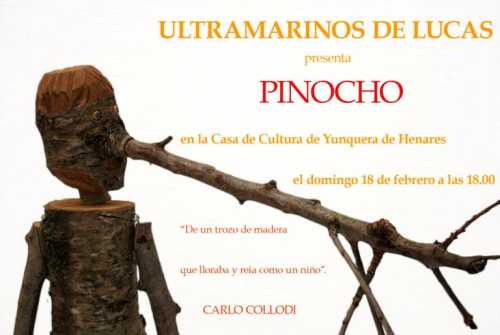La compañía ‘Ultramarinos de Lucas’ representará el domingo 18 de marzo, a partir de las 18:00 horas, en la Casa de Cultura ‘Miguel de Cervantes’ de Yunquera de Henares, el espectáculo infantil ‘Pinocho’.