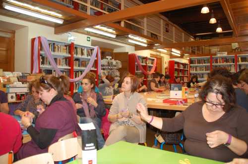 Posteriormente se procedió a realizar un taller de fieltro, en el que se cosió el símbolo de la mujer y se realizó una charla, en la que se explicó el origen de los símbolos de la mujer y el hombre. Además, se comentó el erróneo significado que rodea a la palabra feminismo, comparándola con las palabras machismo o hembrismo, ayudándose de las definiciones incluidas en los diccionarios de la biblioteca, con especial atención al María Moliner.