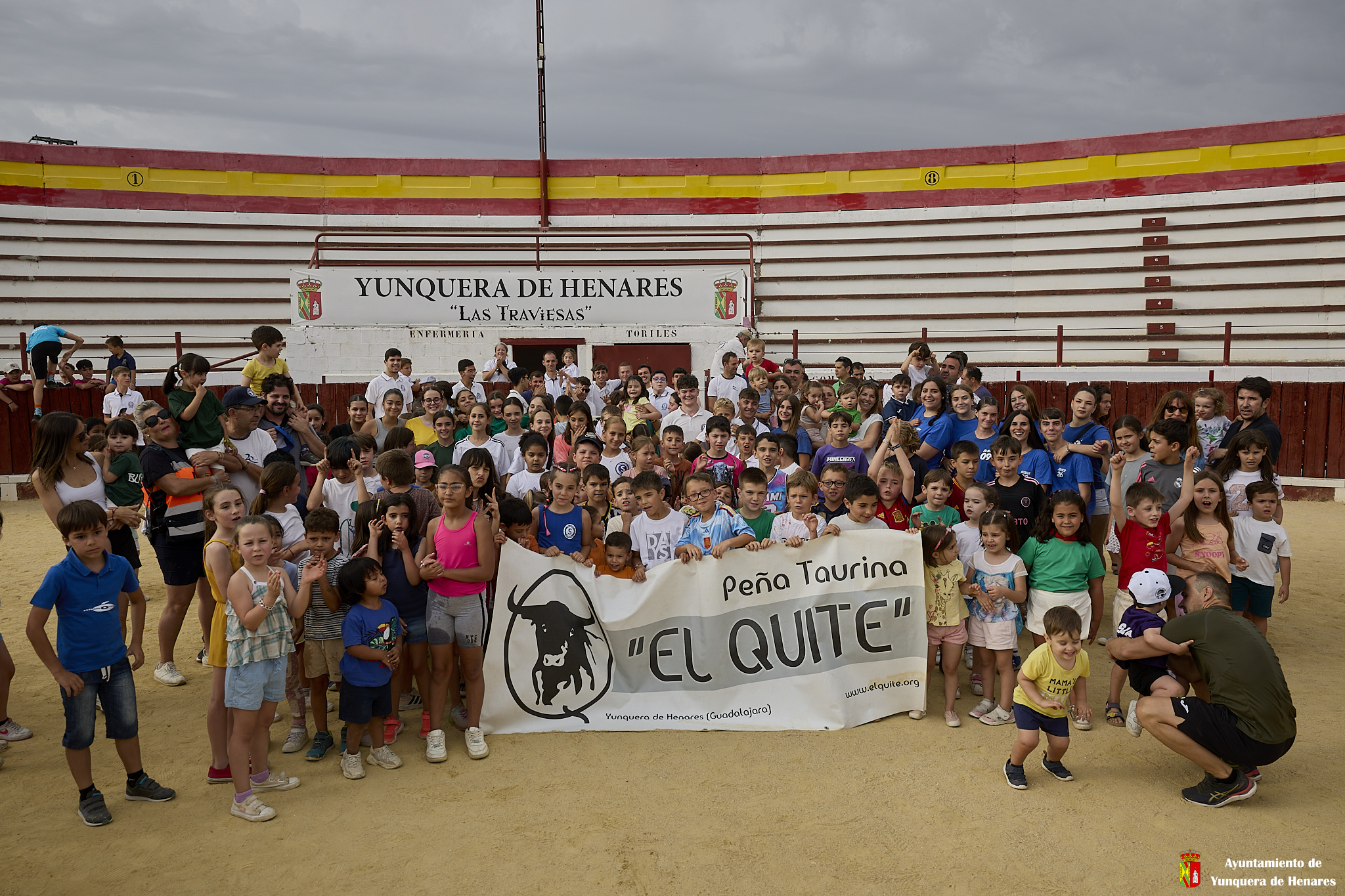 Gran ambiente en el encierro infantil con carretones organizado por la Peña Taurina «El Quite», en la que jóvenes y no tan jóvenes han disfrutado y llenado el albero de la Plaza de Toros “Las Traviesas” de Yunquera.