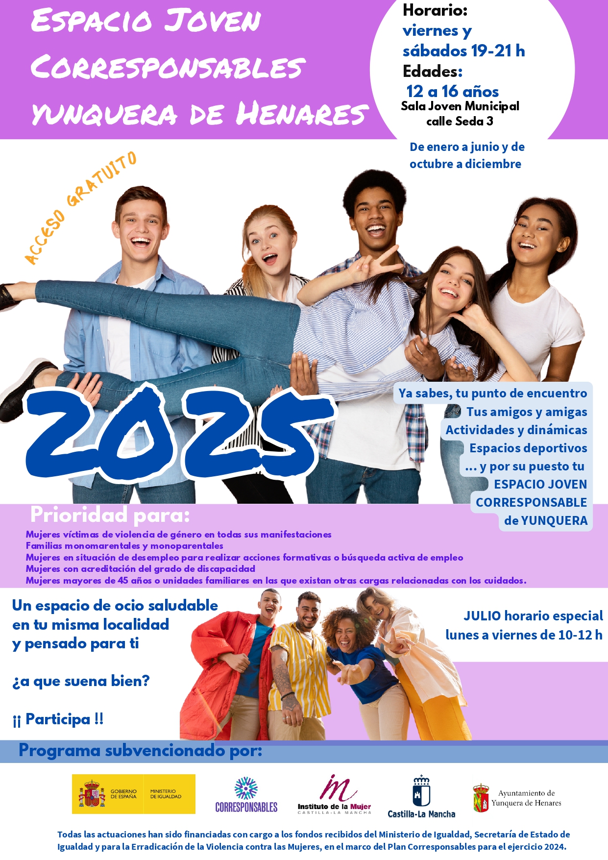 馃敼Espacio J贸ven Corresponsables: viernes y s谩bados de 19:00 a 21:00 h.