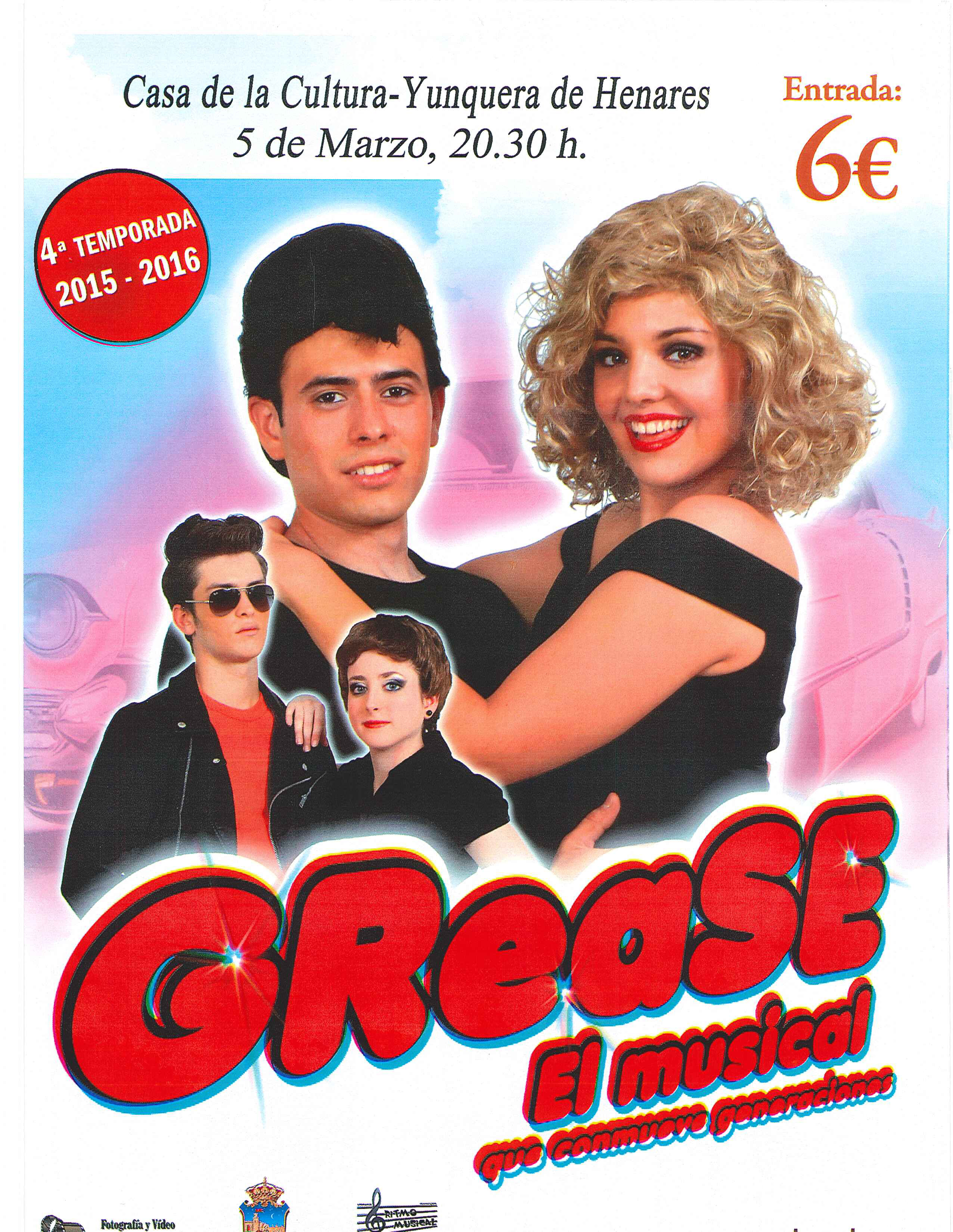 El próximo sábado, 5 de marzo, llega a Yunquera de Henares, de la mano de la Asociación Ritmo Musical, el espectáculo “GREASE. El musical que conmueve generaciones”, con una representación que tendrán lugar en el teatro del Centro Cultural Miguel de Cervantes, a las 20:30 horas. Las entradas, al precio de 6 euros, se pondrán a la venta una hora antes del pase en las taquillas del Centro Cultural.