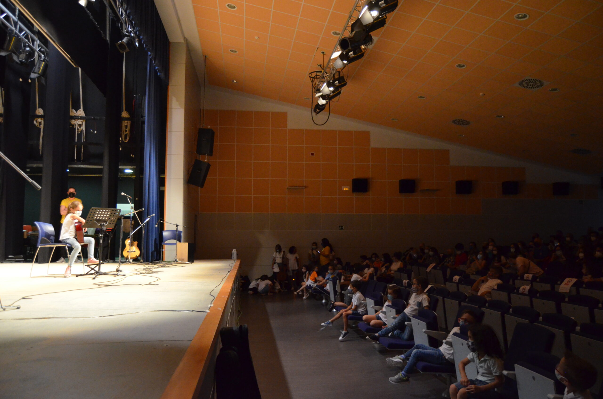 Los siguientes fueron los estudiantes de guitarra. Primero uno por uno y después con una actuación coral dirigida por su profesor estrella, el conocido cantante y compositor Javier Matía. Seguidamente, una de las alumnas de violín interpretó varias canciones, con las que el público pudo disfrutar de lo mucho que ha aprendido durante el curso.