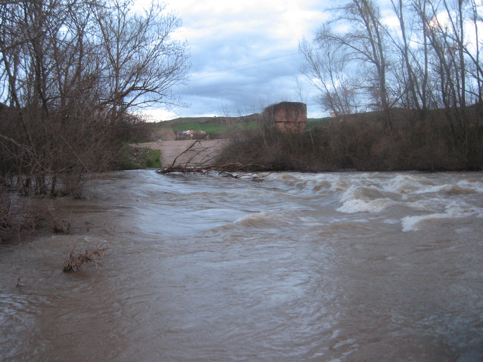 EL RIO HENARES SE DESBORDA A SU PASO POR YUNQUERA Y CUBRE EL PUENTE QUE LLEVA AL CAMINO DE CIRUELAS